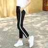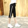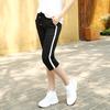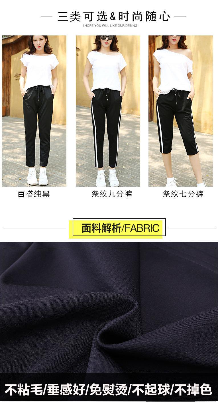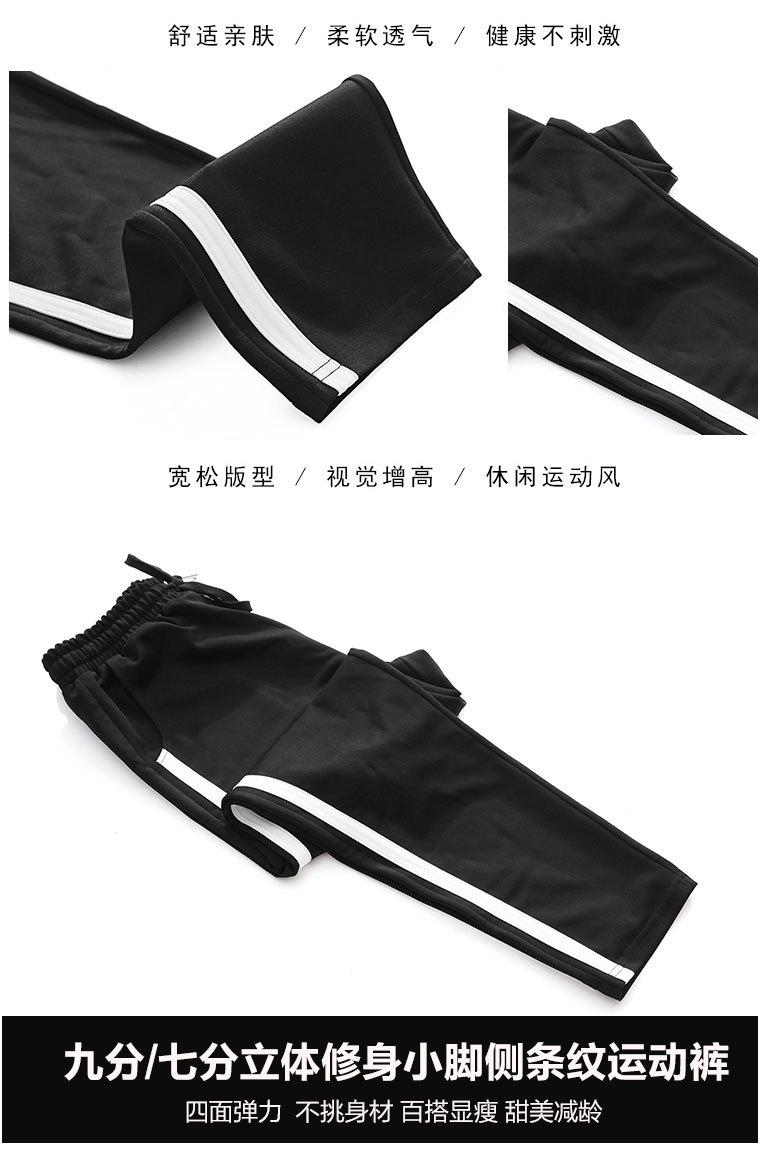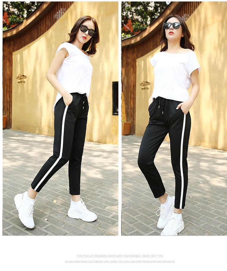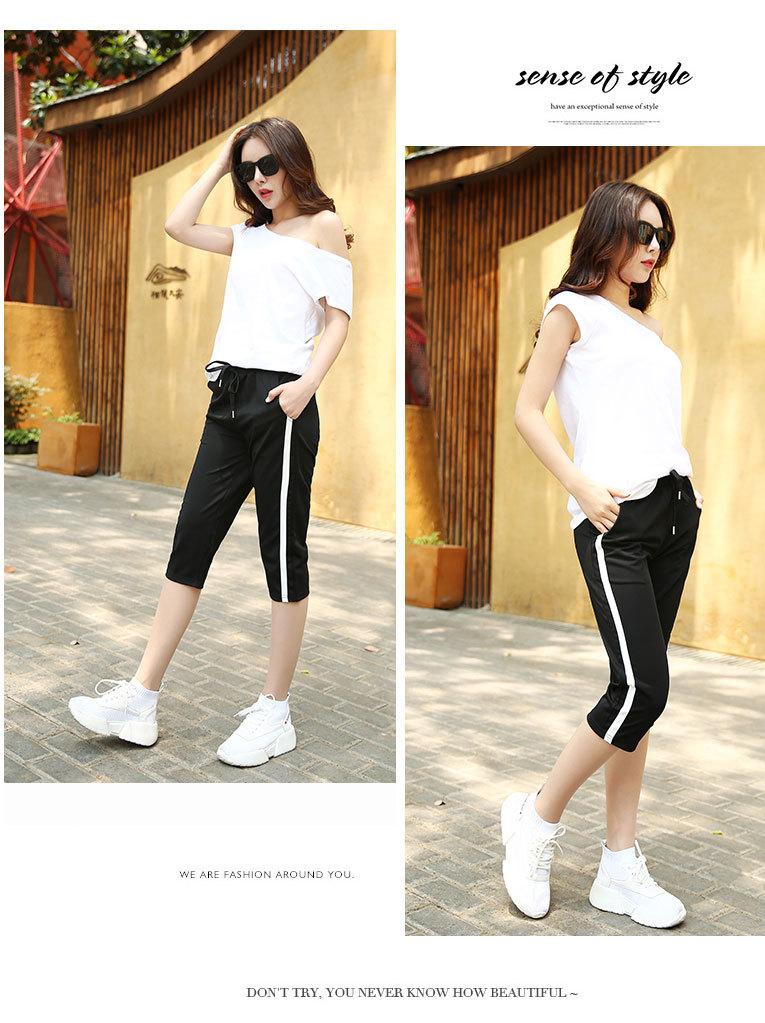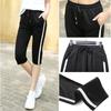 Side White stripe ankle-length pants, Side White stripe cropped pants, Simple black cropped pants