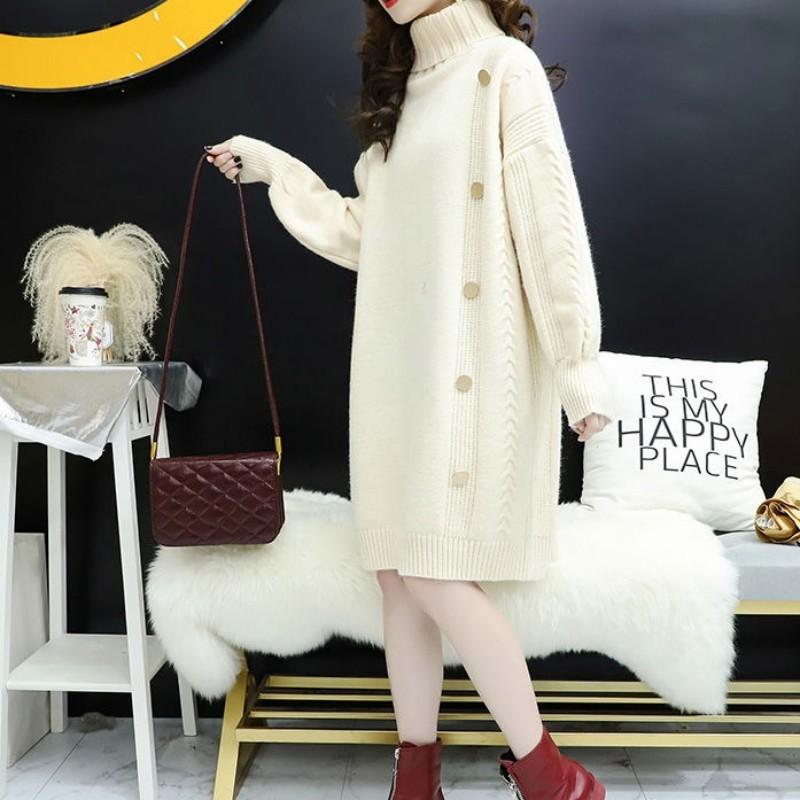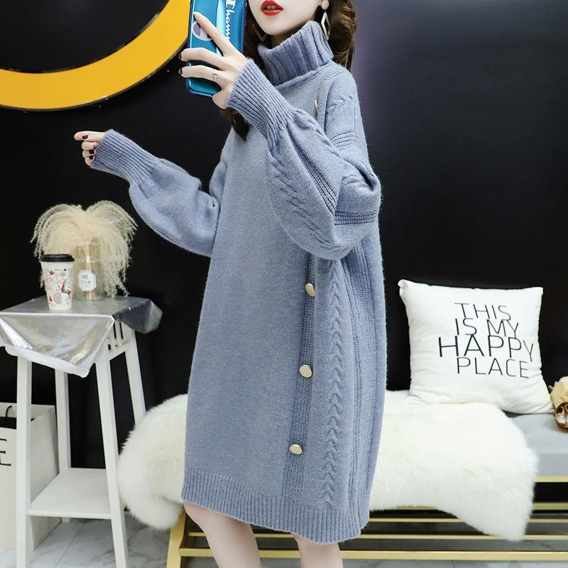 Suéter Otoño e Invierno 2025 Largo Medio Cuello Alto Grueso Manga Larga Jersey Estilo Lazy Top de Mujer Holgado Talla Grande