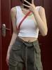 Verano Nuevo Conjunto Sin Mangas Ombligo Chaleco Estudiante Mujer Deportivo Corto Camisola Camiseta Base Top Mujer