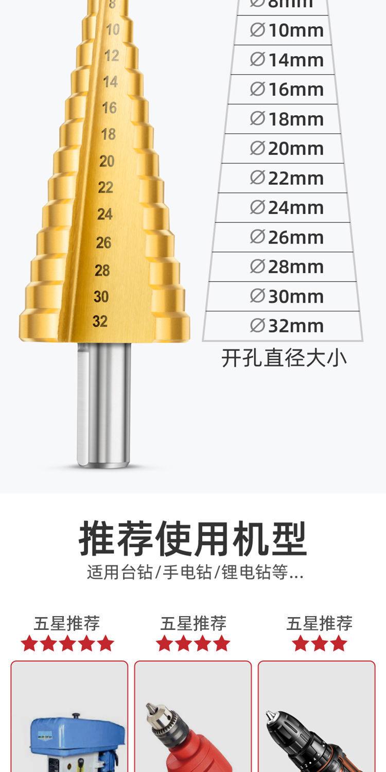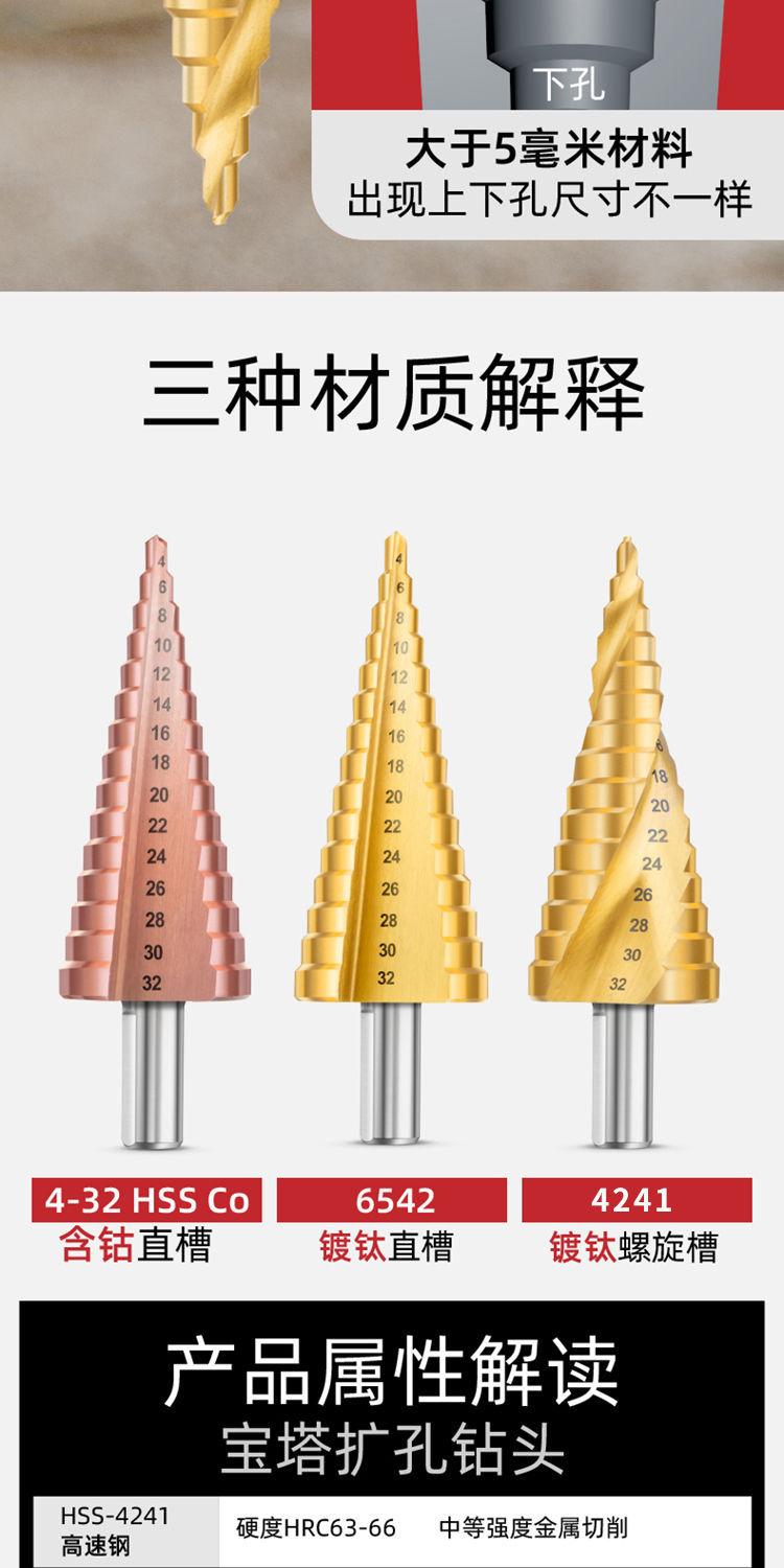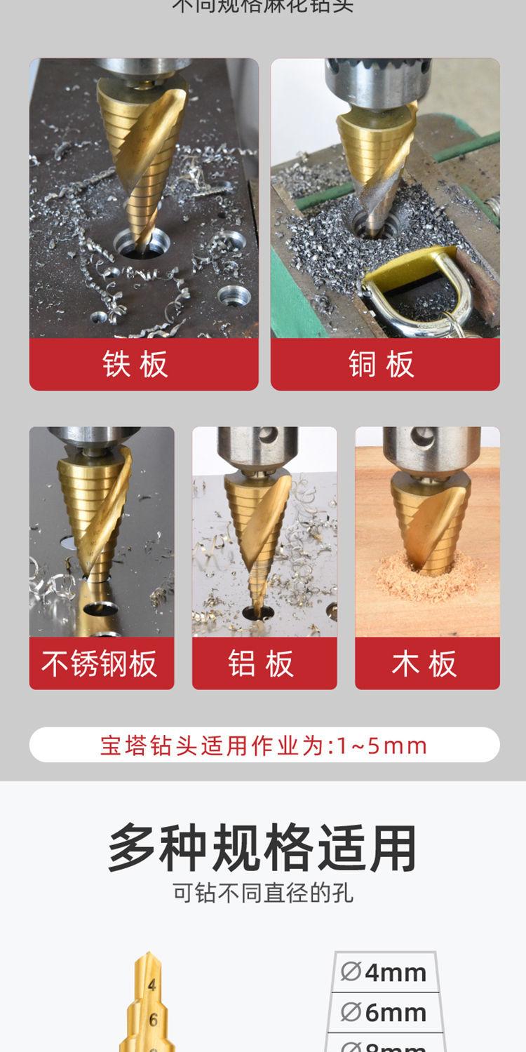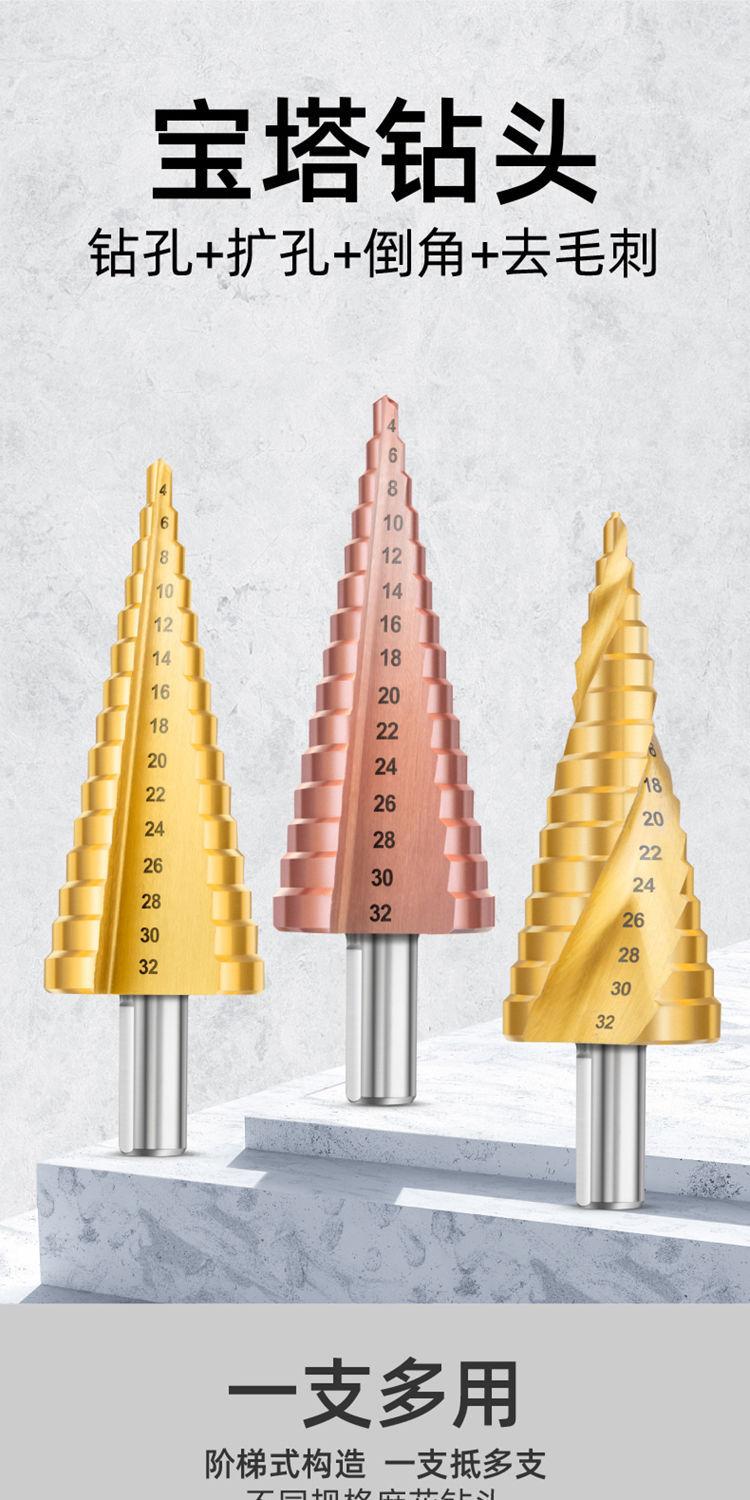 Abridor de agujeros para taladro Pagoda, acero de perforación universal, escariador superduro, metal cónico, broca escalonada multifuncional de acero inoxidable