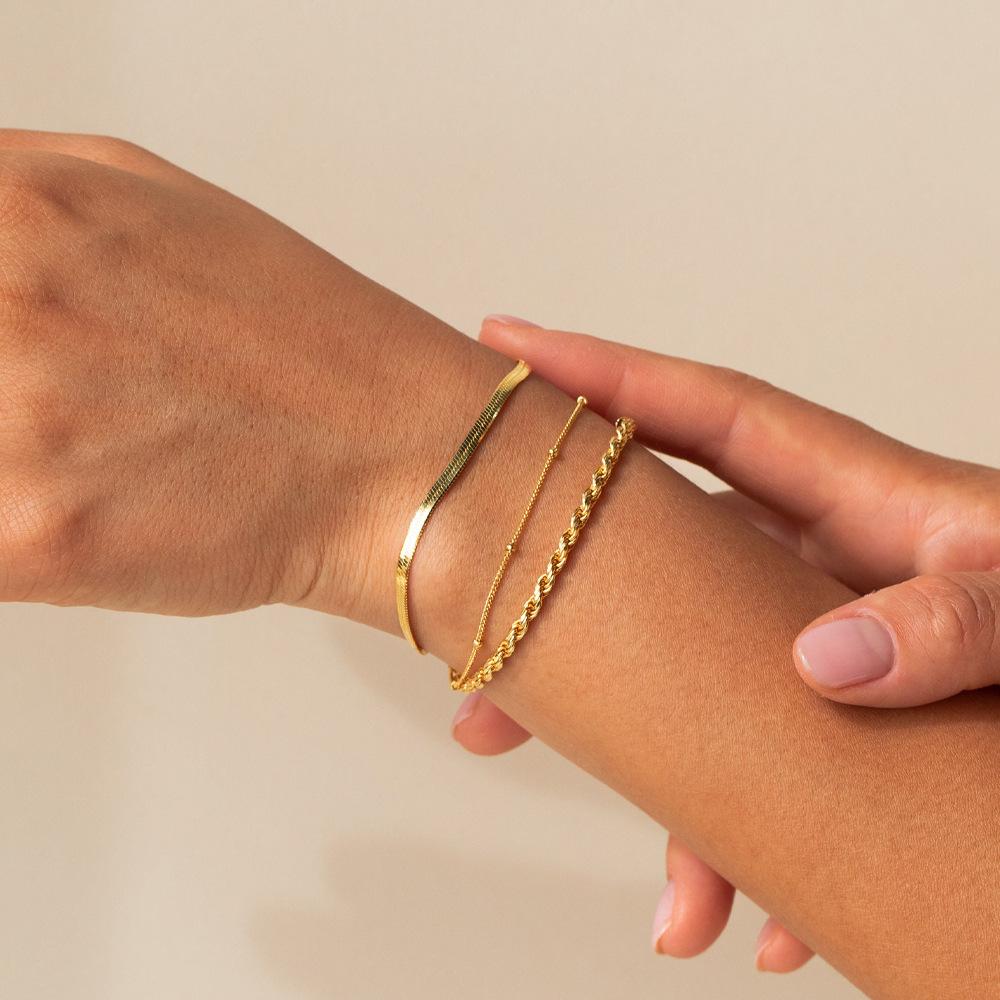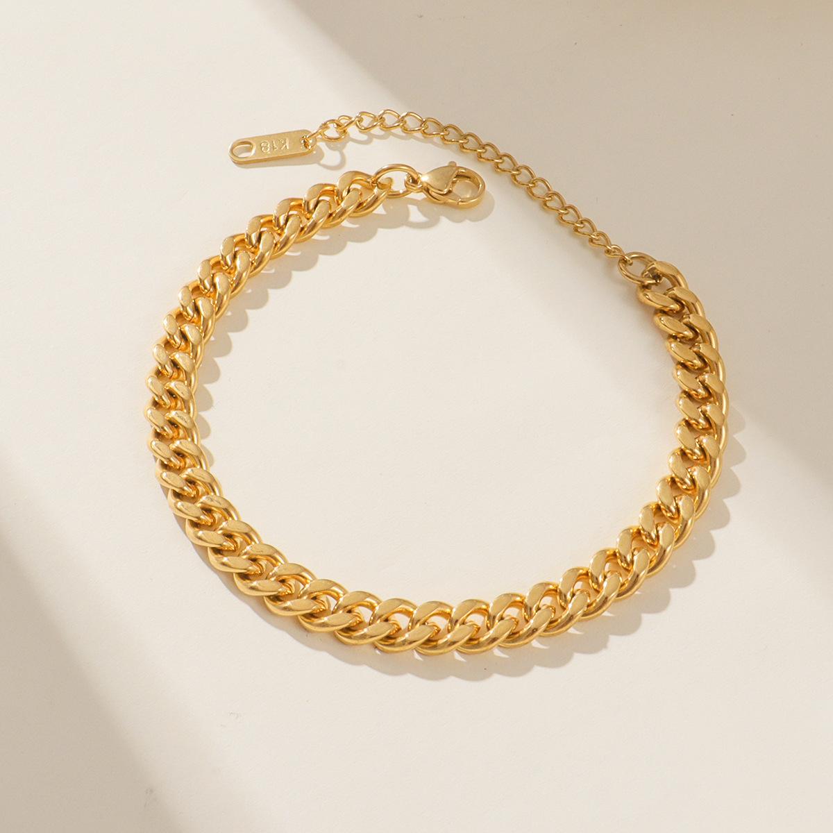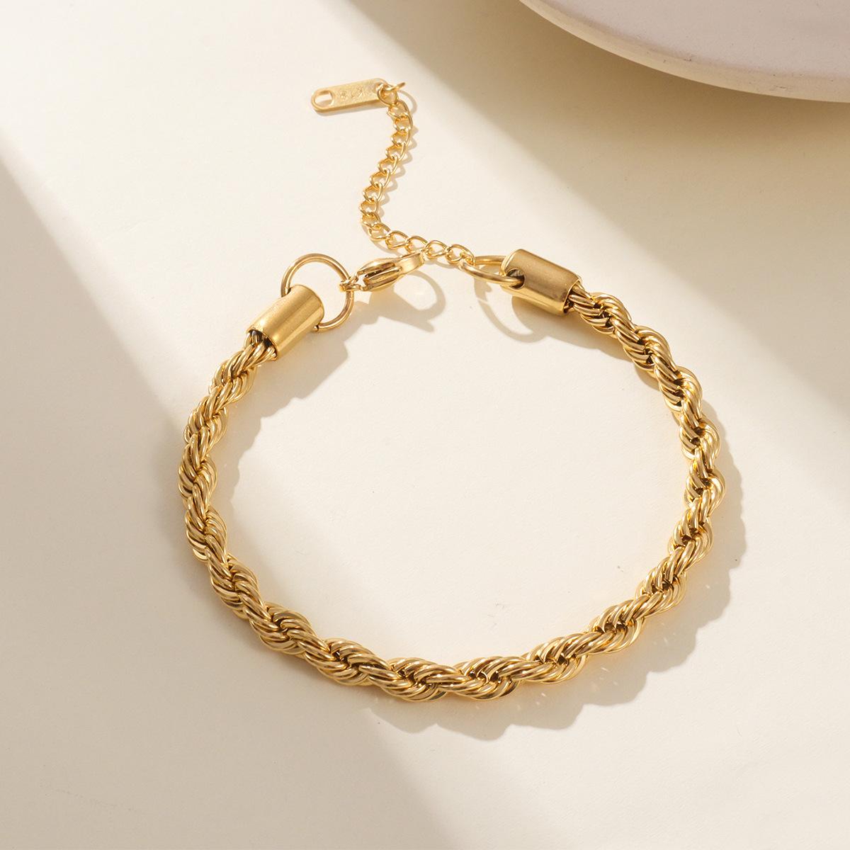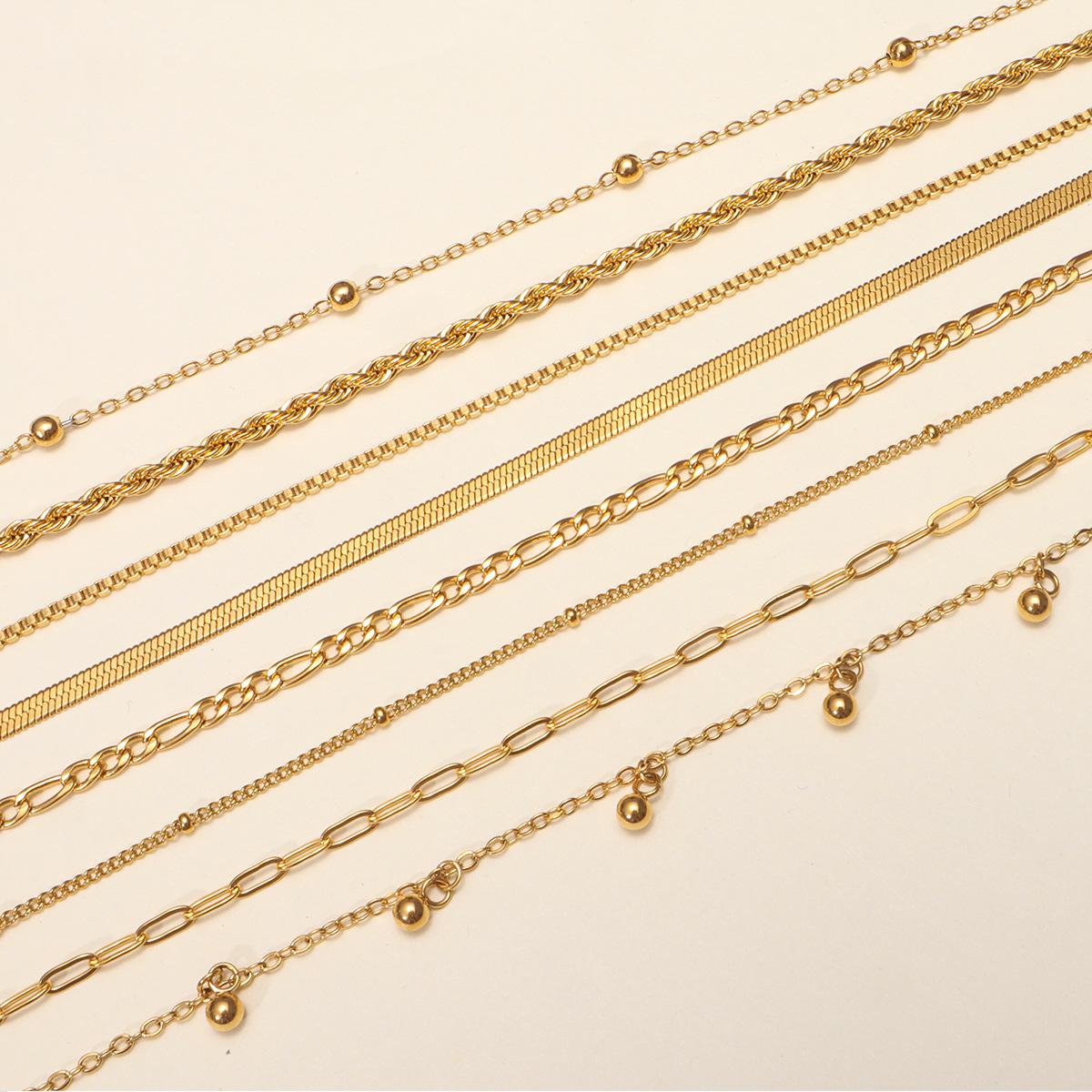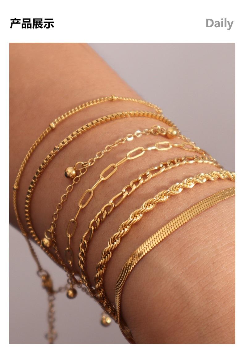 Europea y Americana Transfronteriza Cadena de Acero Inoxidable Chapada en Oro de 18K para Mujer Cadena Figaro Simple Cadena de Caja Cadena Twist Pulsera Pulsera