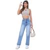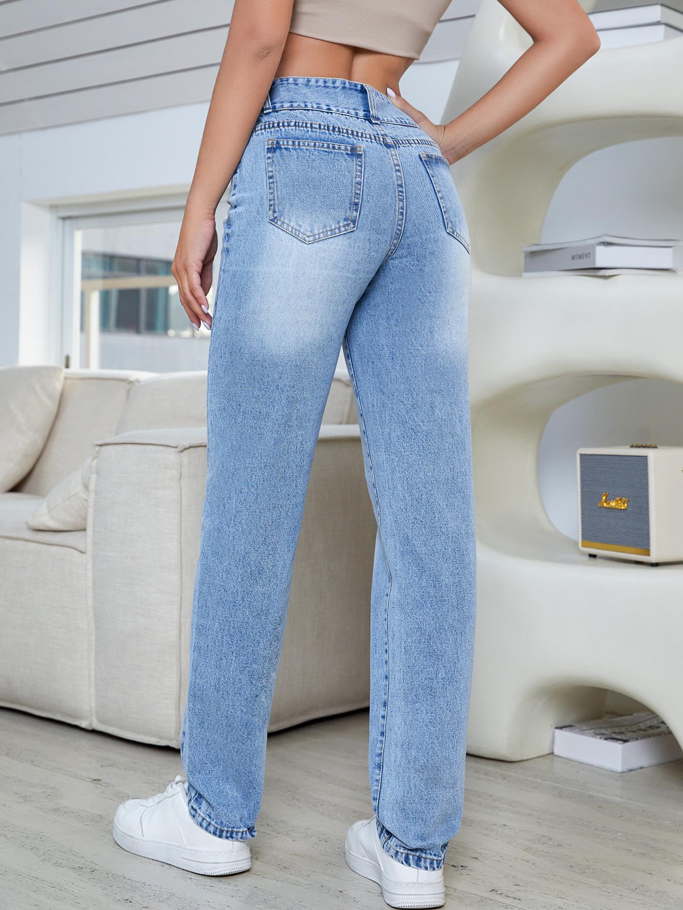 35725 # Amazon Europeo y Americano Transfronterizo Aliexpress Pantalones de Mezclilla Rectos Slim de Cintura Alta