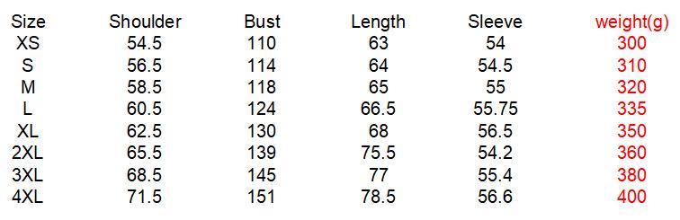 XS, S, M, L, XL