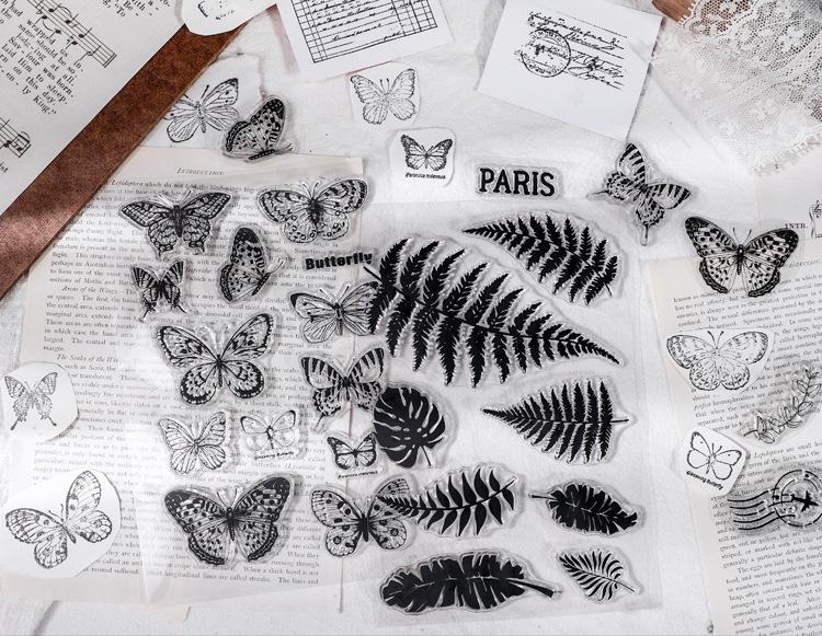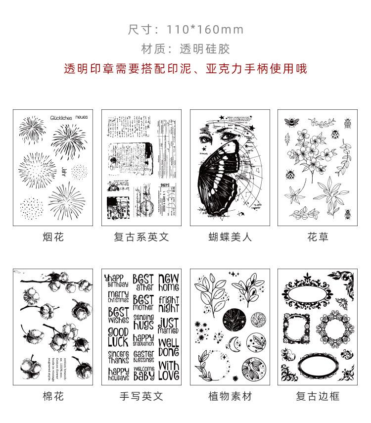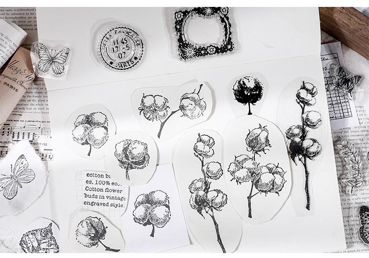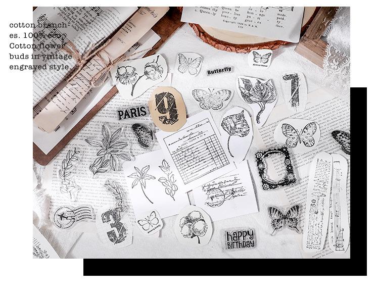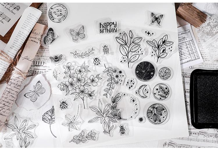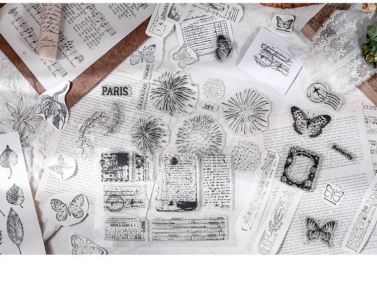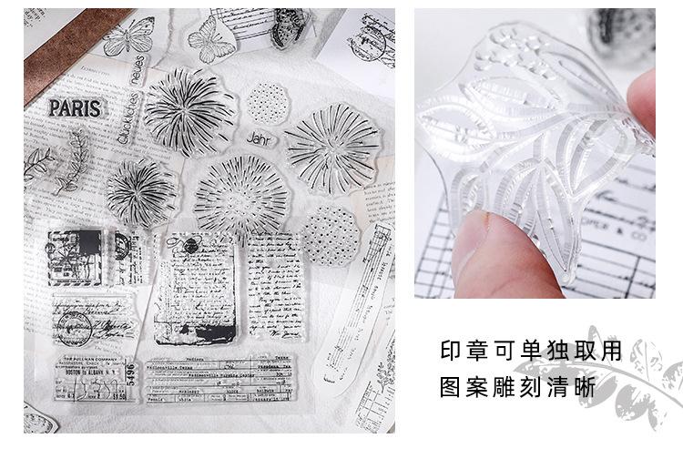 16 sellos de silicona transparente para diario, sellos de goma decorativos vintage para diario de plantas, sellos de collage con arreglos florales y plantas verdes.