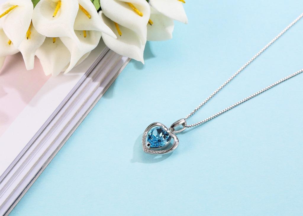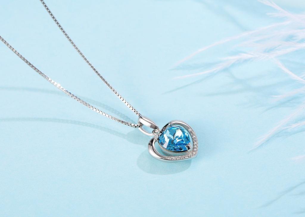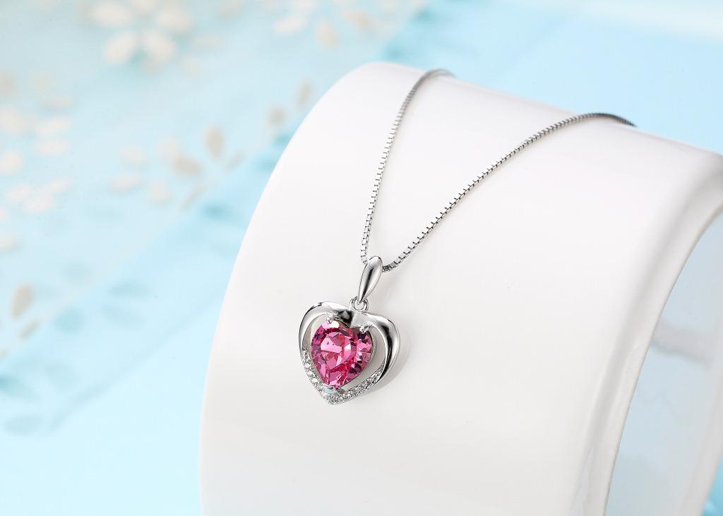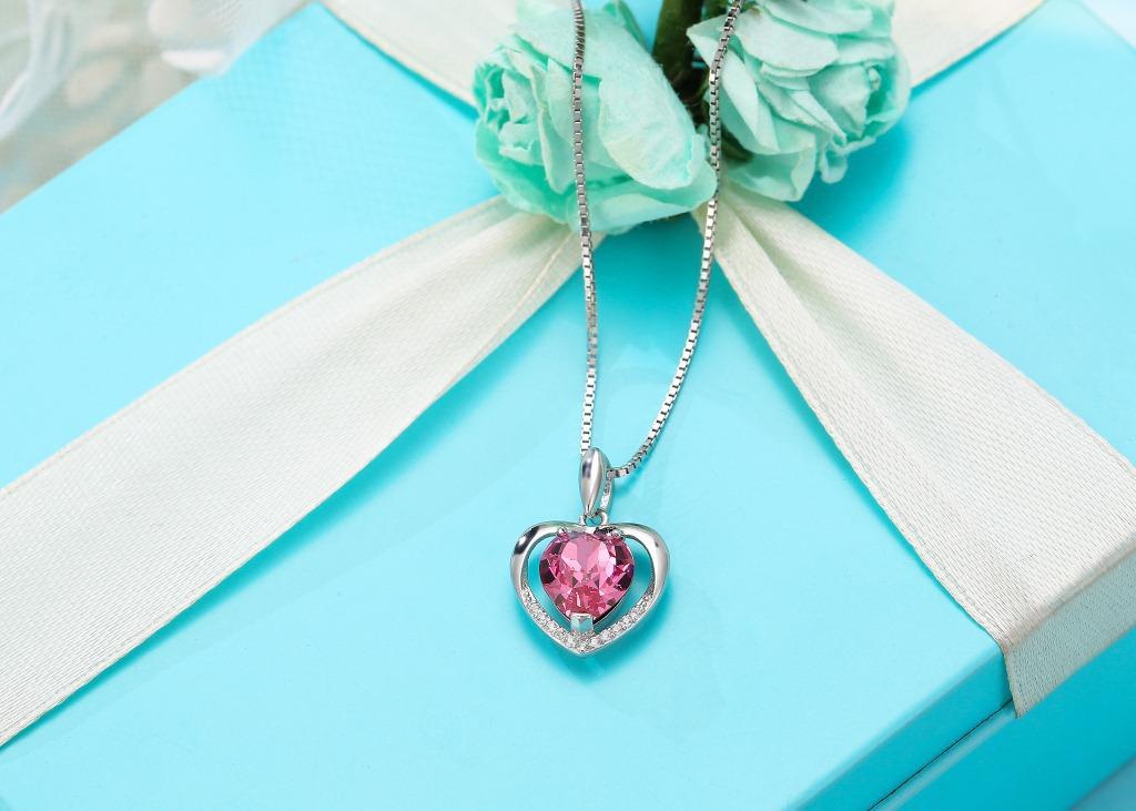 Collar de corazón eterno de cobre blanco puro, collar coreano con forma de corazón de amor, colgante de cristal directo de fábrica Shihua