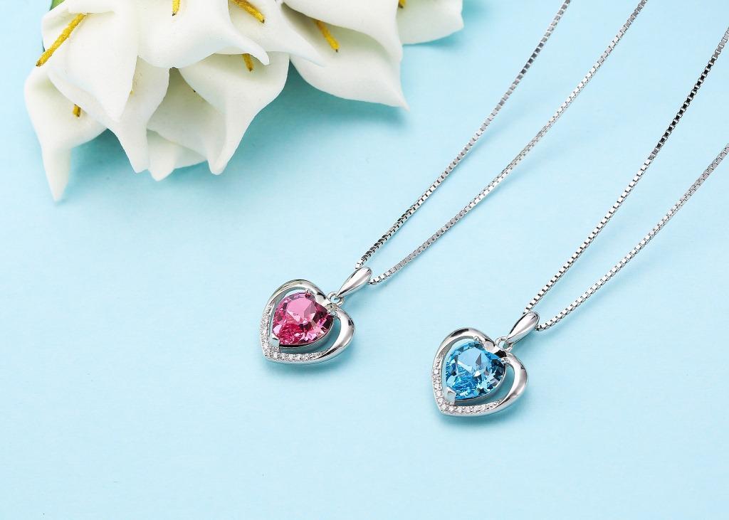 Aquamarine diamond single pendant (without chain), White diamond single pendant (without chain), Purple diamon...