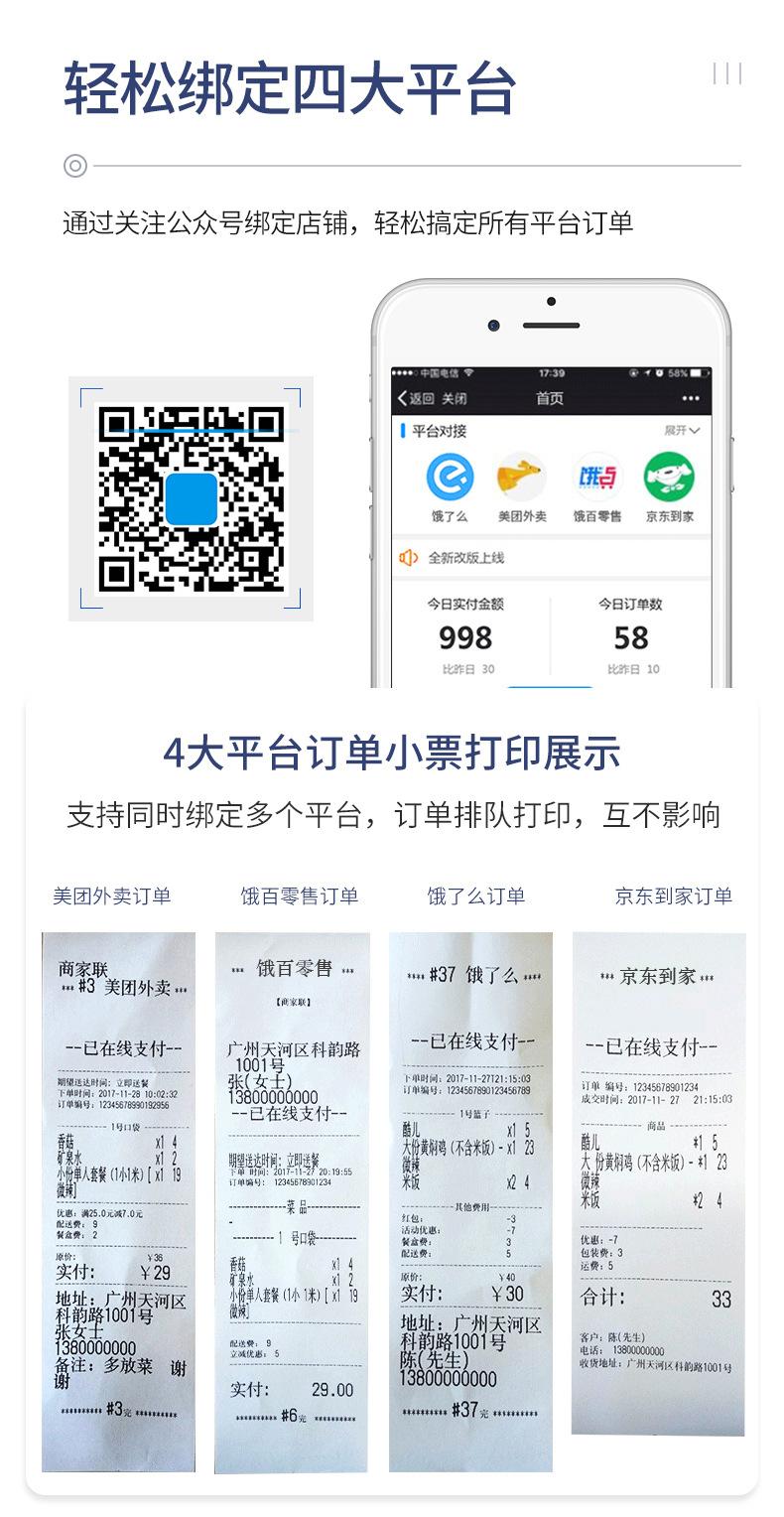 Impresora para llevar Xinye Meituan Eleme con recepción automática de pedidos, voz real, WiFi, inalámbrica y Bluetooth.
