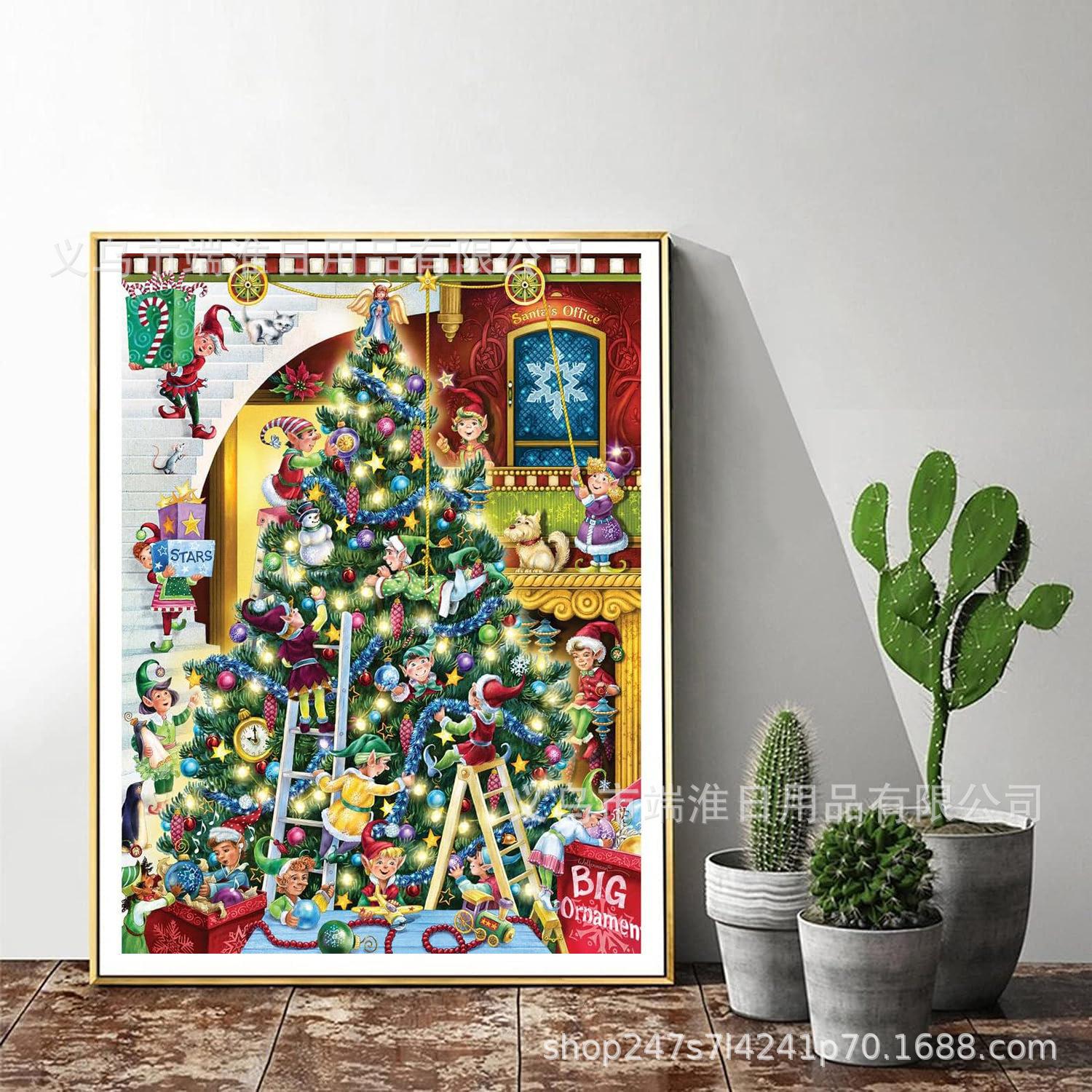 Pintura de diamantes navideña transfronteriza, diamante redondo, diamante completo, diamante cuadrado, pintura decorativa para sala de estar y dormitorio, bricolaje, venta al por mayor