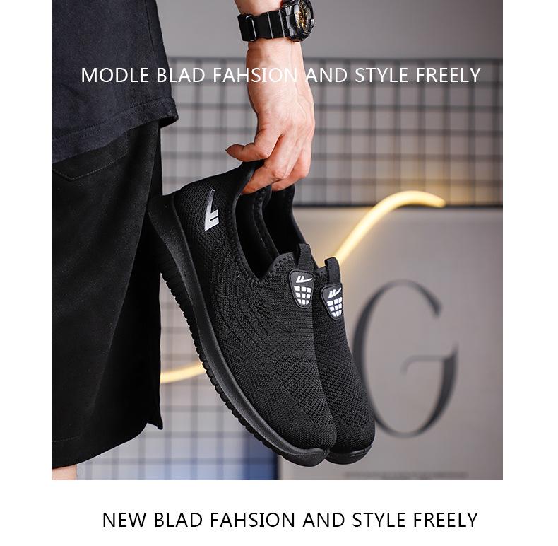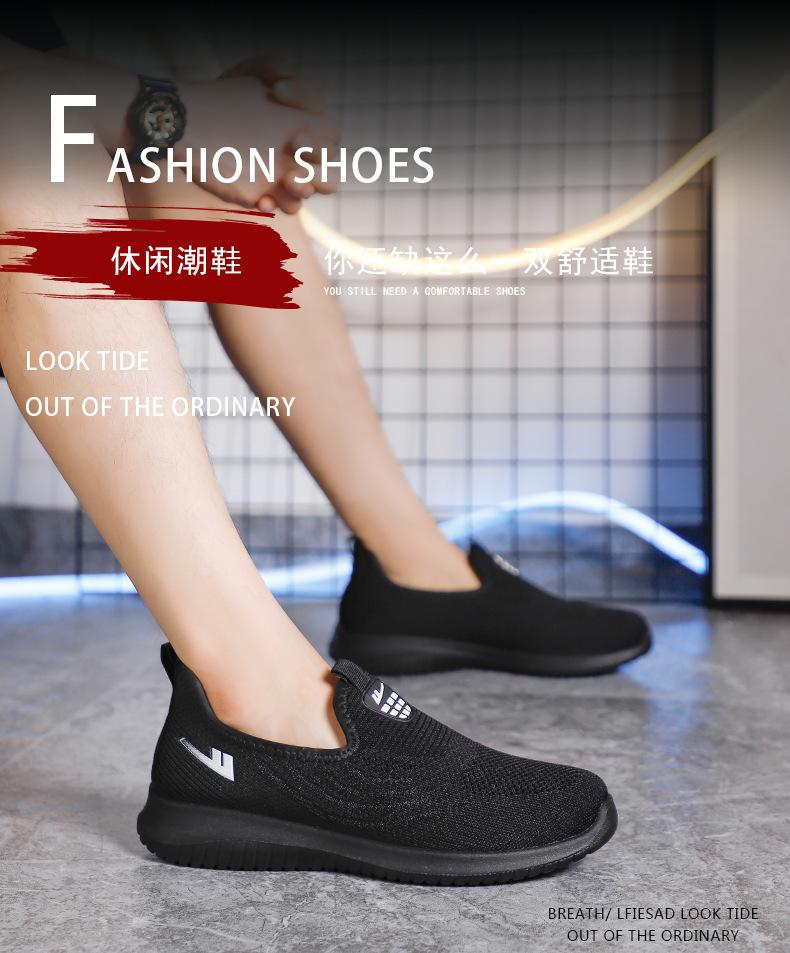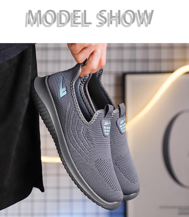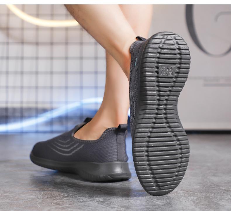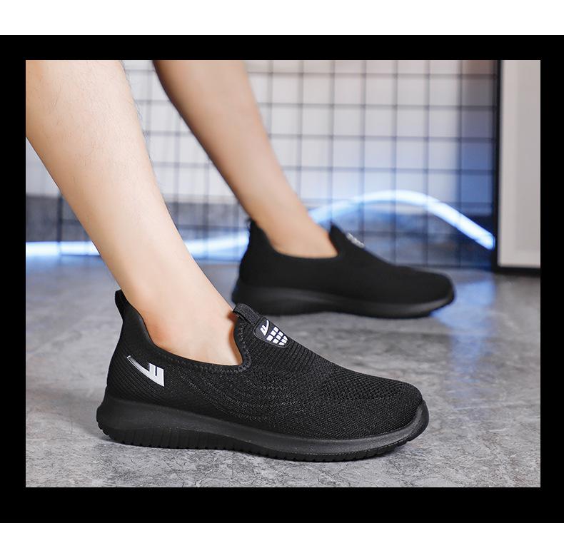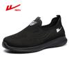 Zapatos de Malla de Tela Slip-On para Hombre para Personas de Mediana Edad y Ancianas, Antideslizantes, Resistentes al Desgaste, de Suela Blanda, Zapatos Deportivos Casuales Negros
