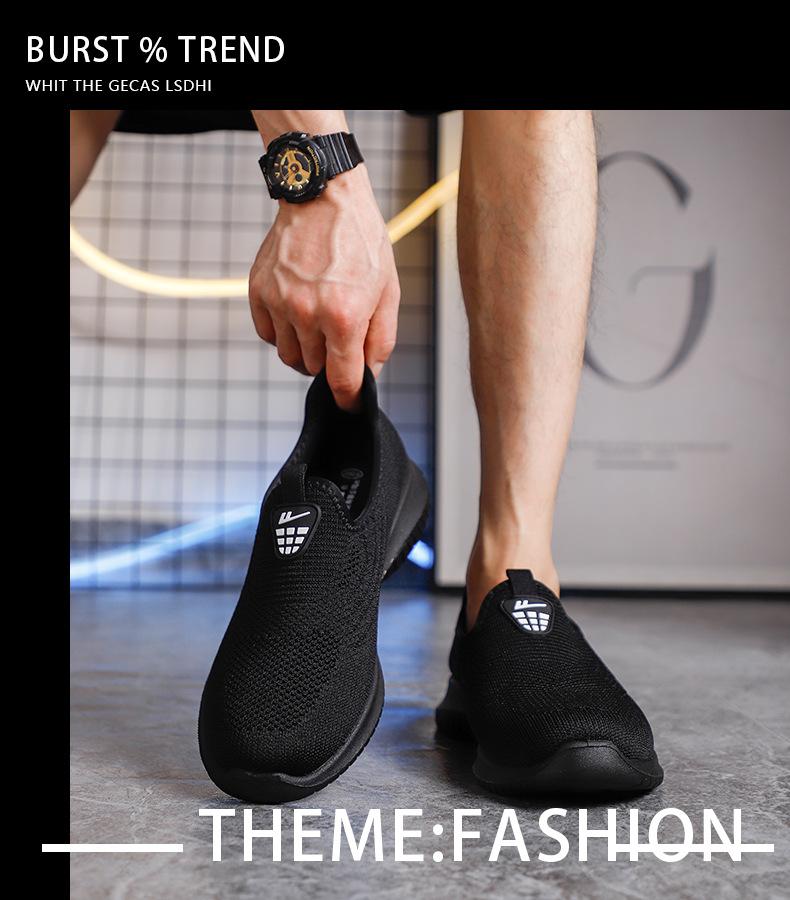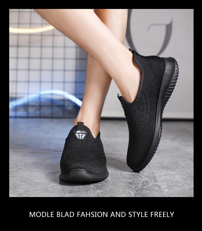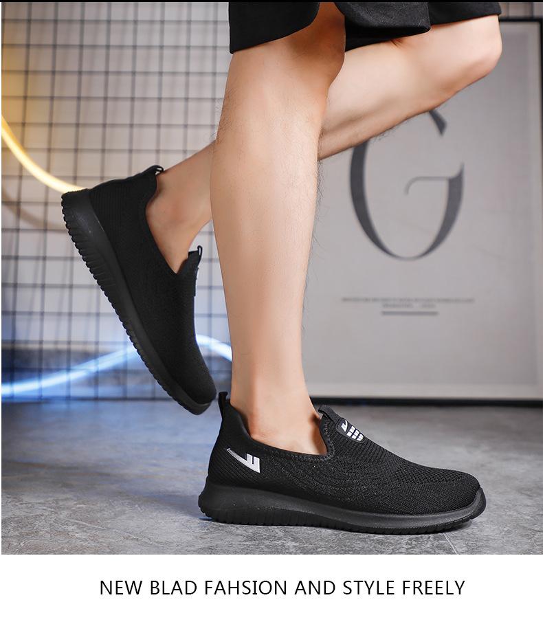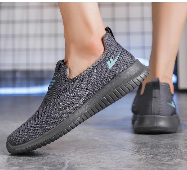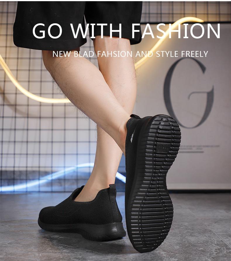 Zapatos de Malla de Tela Slip-On para Hombre para Personas de Mediana Edad y Ancianas, Antideslizantes, Resistentes al Desgaste, de Suela Blanda, Zapatos Deportivos Casuales Negros