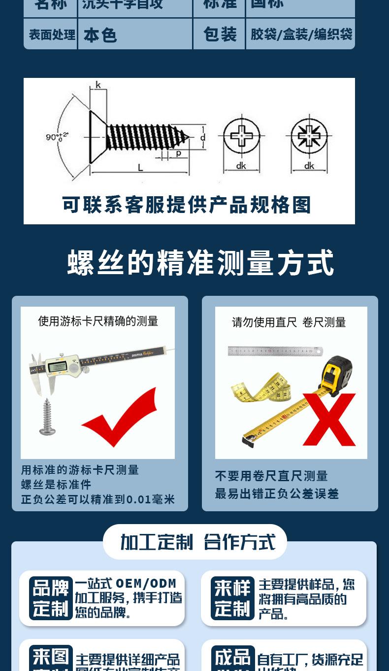 Acero Inoxidable 304 Ka Tornillos Autorroscantes de Cabeza Plana Tornillos Autorroscantes de Cabeza Avellanada Tornillos para Madera M4/M5/M6Ka Modelo Estándar