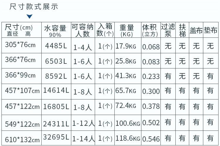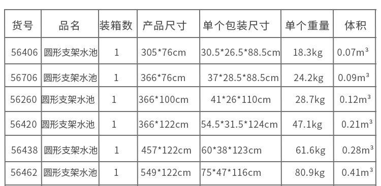 56706 (366*76cm) Tamaño de la caja: 28*89.5*27.5cm Peso de la caja: 20.9kg 1 pieza