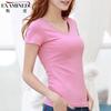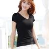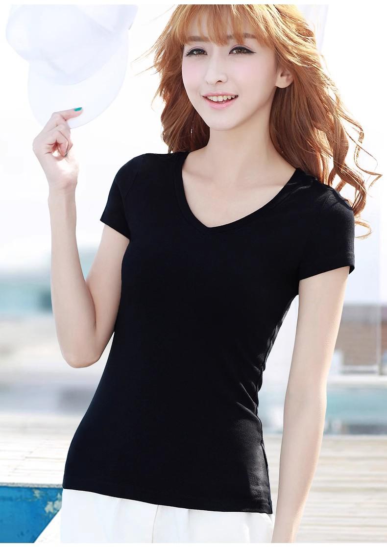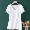 Camiseta de verano de talla grande para mujer, con cuello en V y manga corta, para mujer, de algodón puro, con hombros descubiertos y estampado de chica gordita.