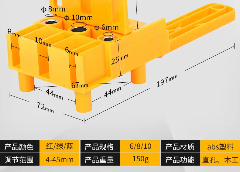 Localizador de Perforación de Agujero Recto de Mano Multifuncional Plástico ABS de Alta Dureza Carpintería Localizador de Perforación de Agujero Recto