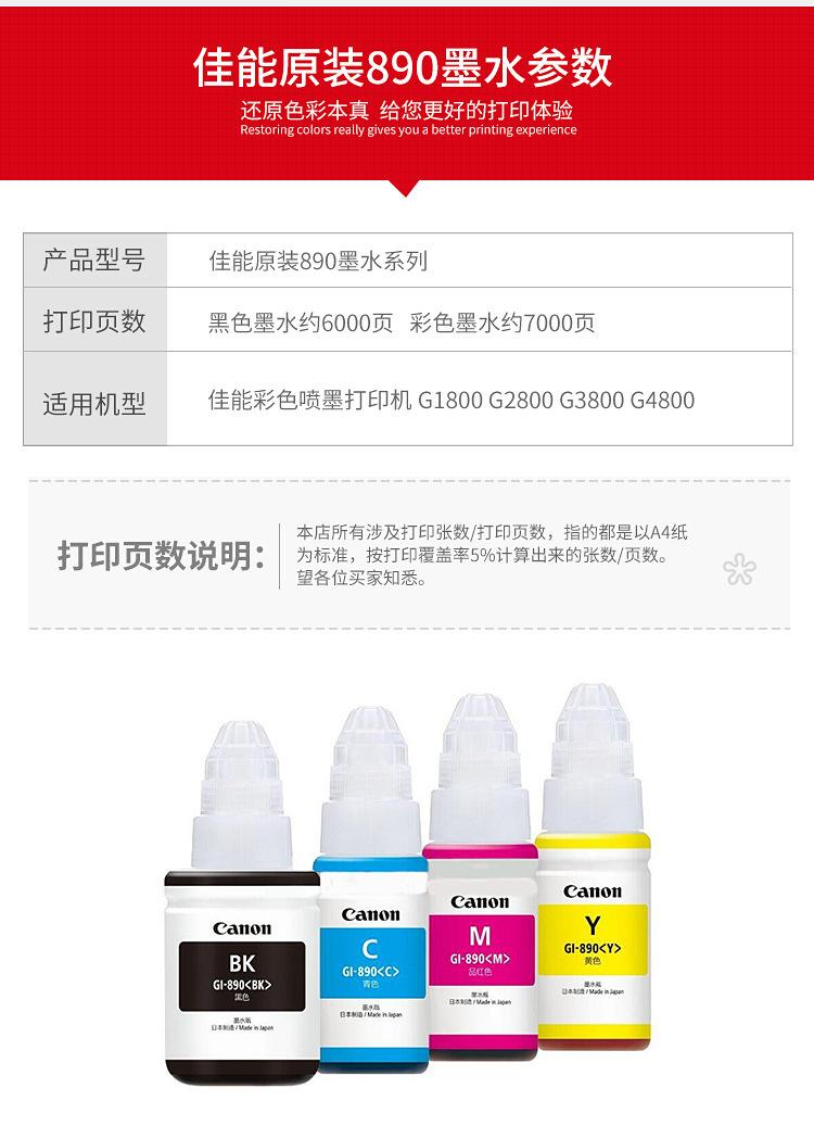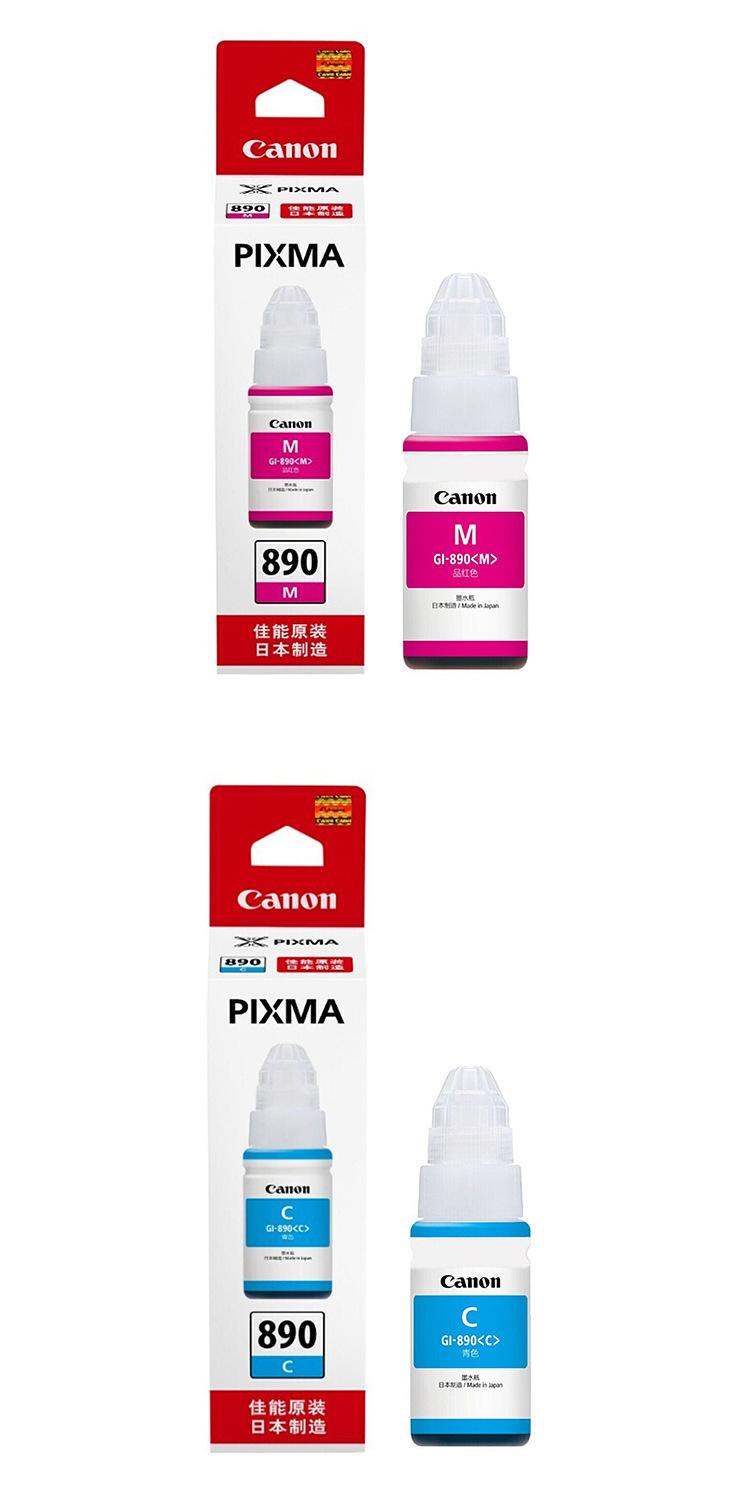 Black GI-890BK (135 ml 6 thousand pages), Cyan GI-890C (70 ml 7,000 pages), Red GI-890M (70 ml 7,000 pages), Y...