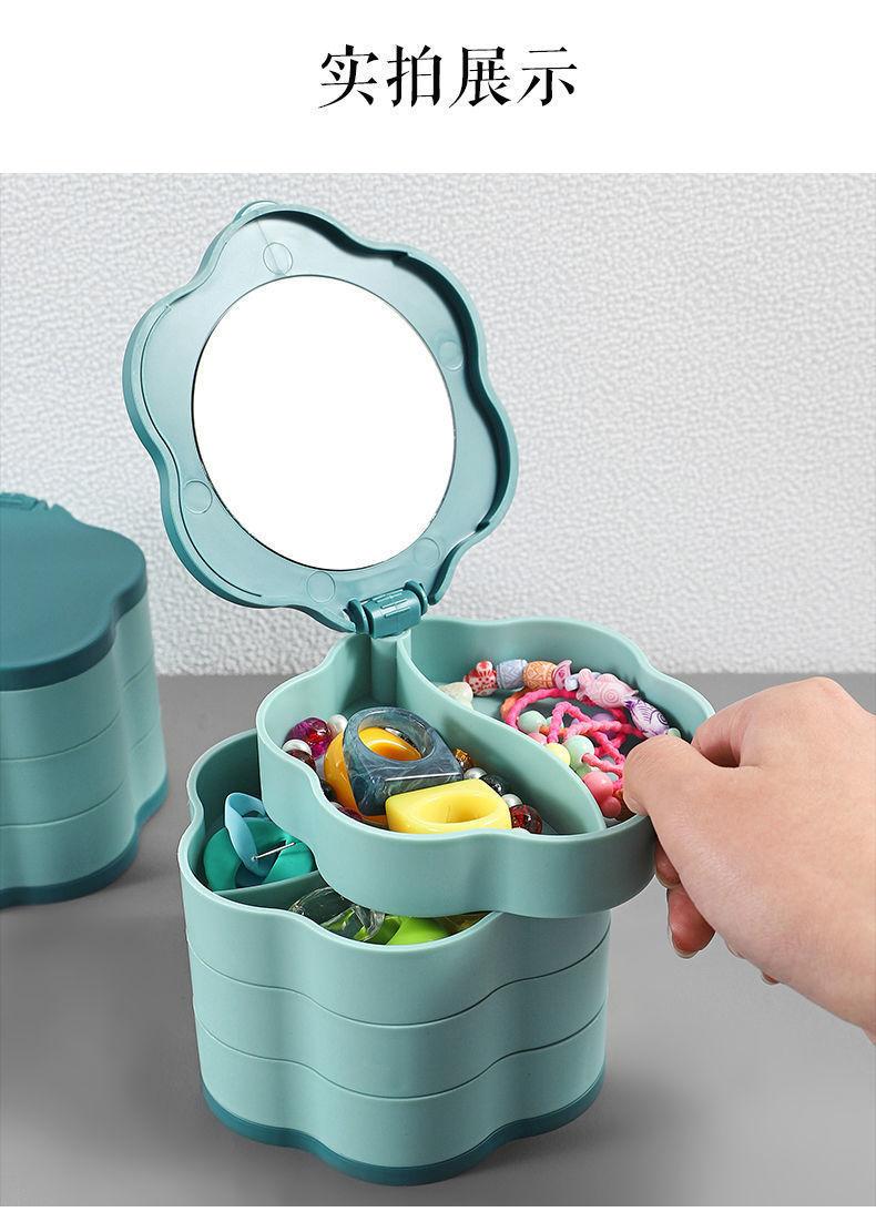 Joyero de mano multicapa, gran capacidad, para pendientes, collares, almacenamiento de plástico, giratorio, portátil, para mujer