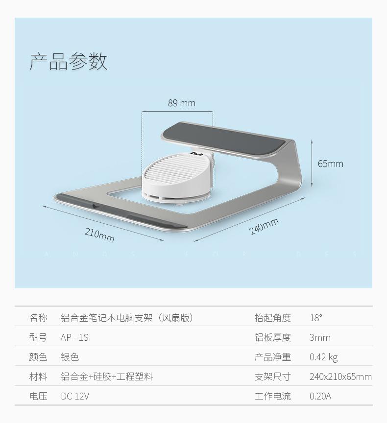 Radiador para portátil EPP AP-1S con base de aleación de aluminio y soporte para ventilador USB
