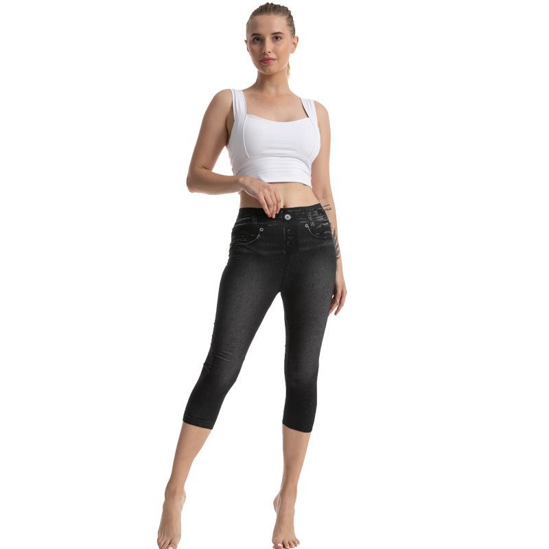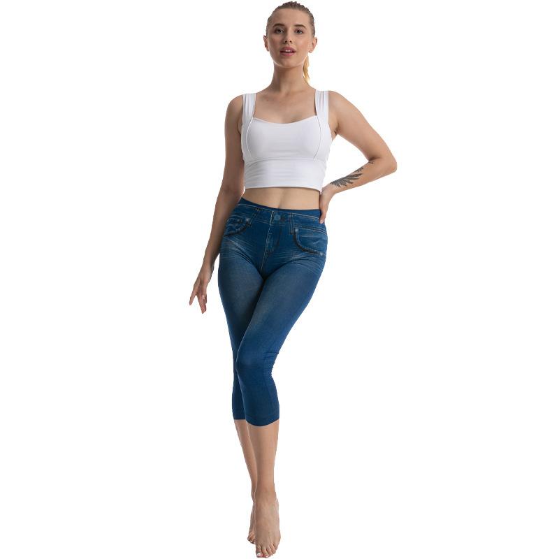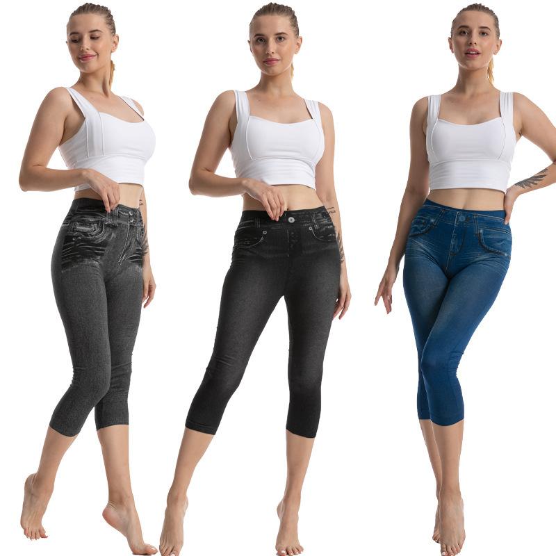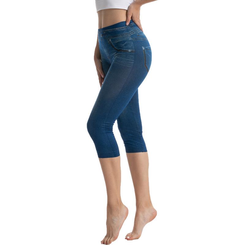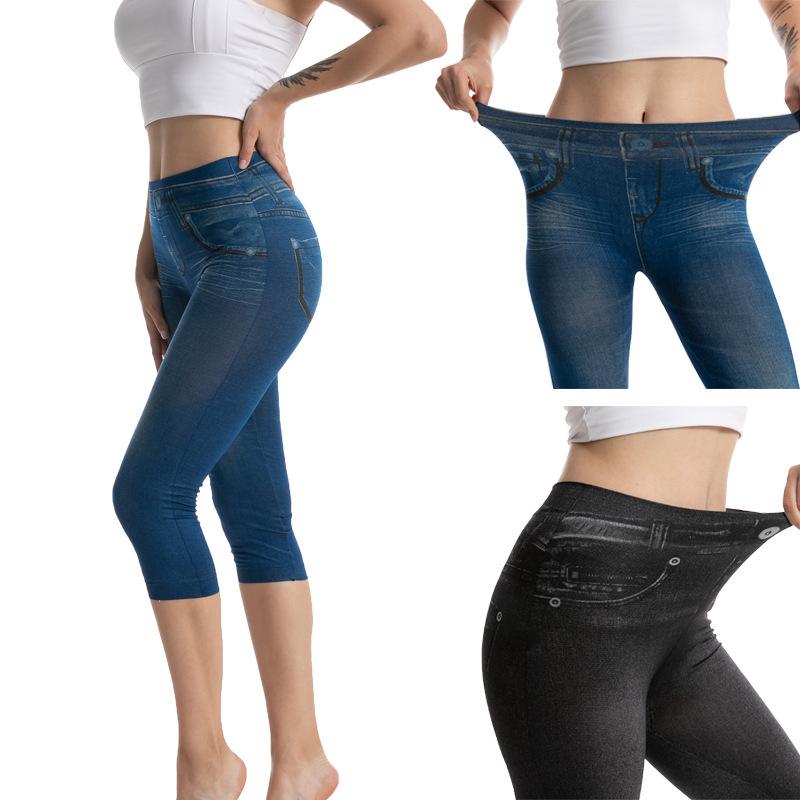 Leggings vaqueros de imitación de AliExpress Independent Station, pantalones cortos ajustados y elásticos de alta elasticidad para mujer.