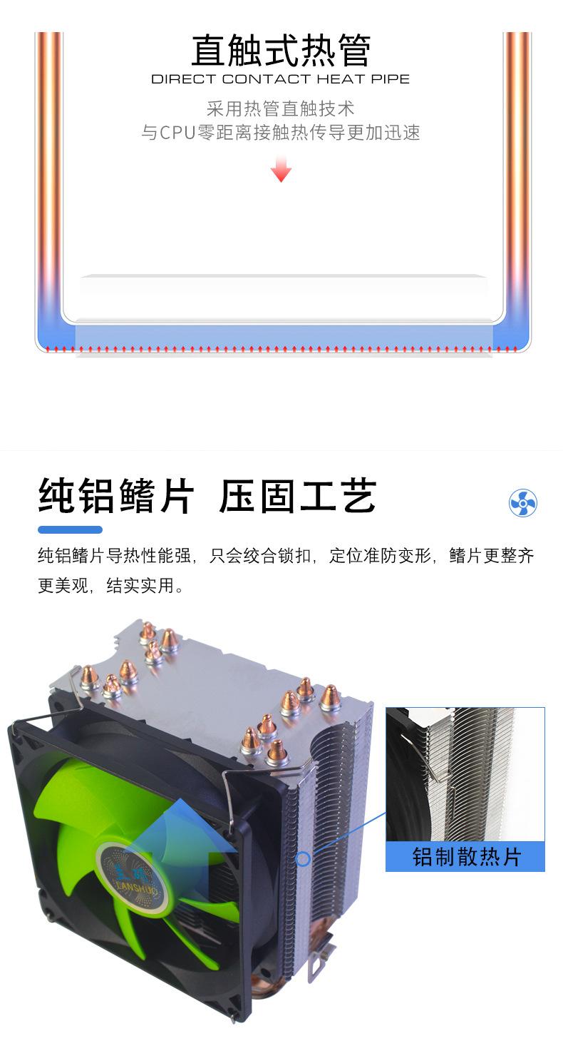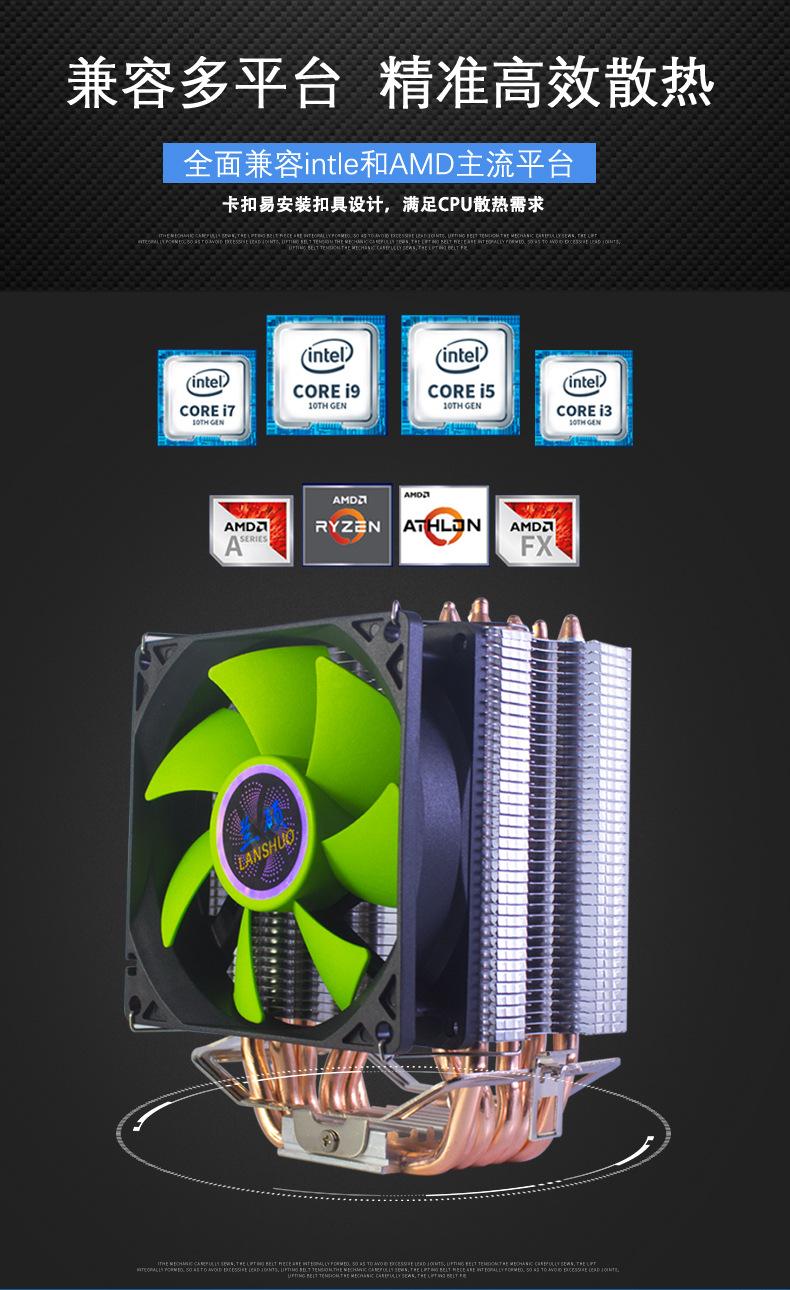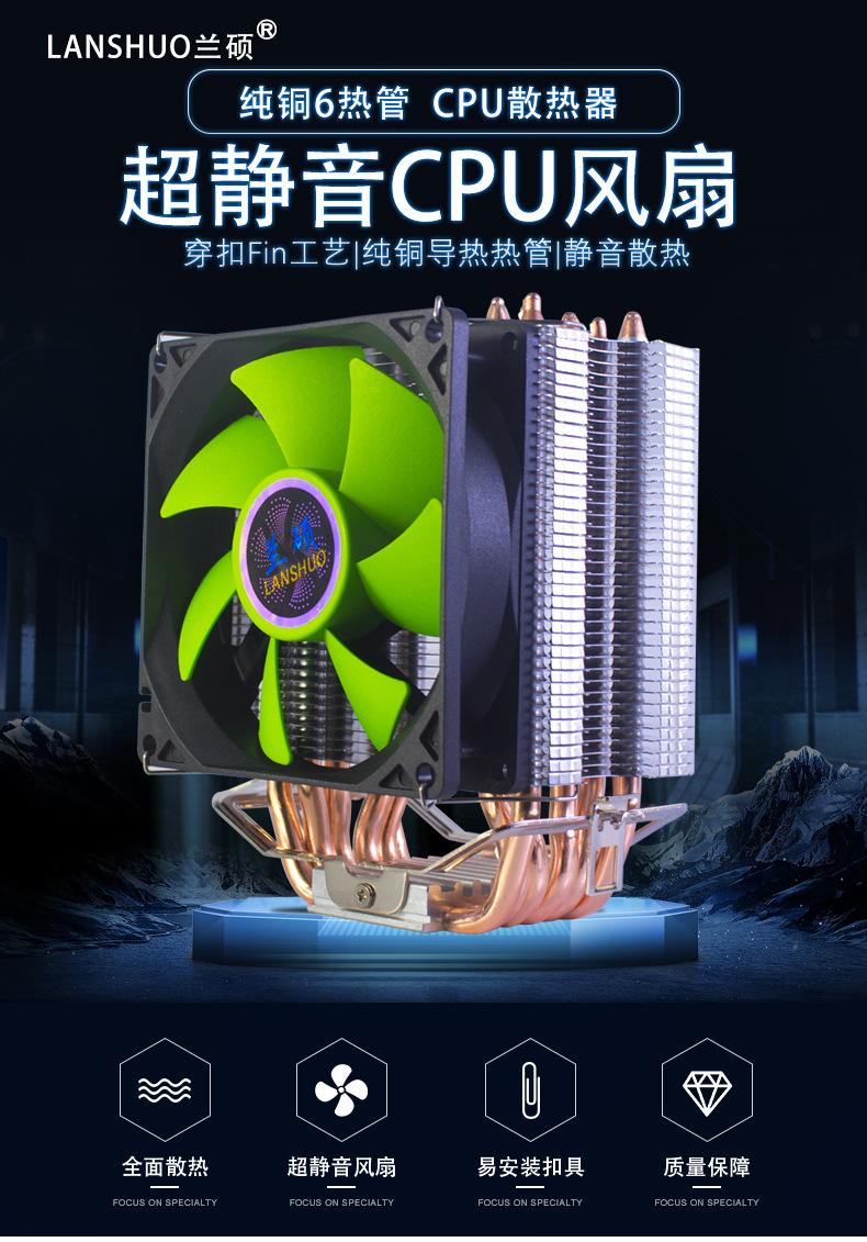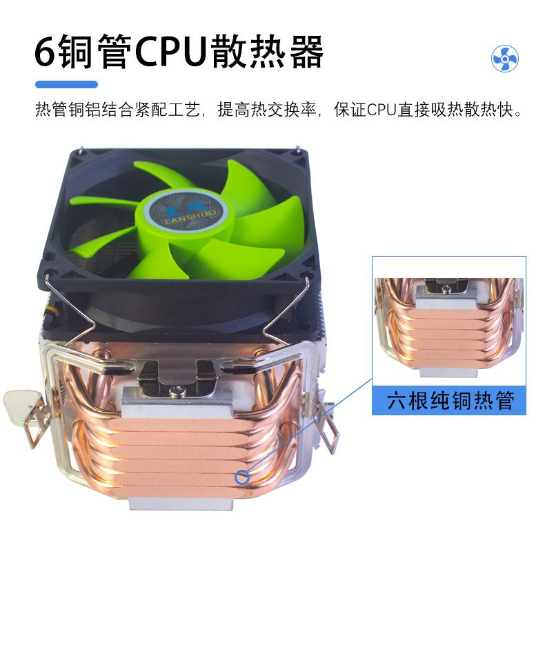 Suministro directo de fábrica de radiador de CPU silencioso de 6 tubos de calor de cobre puro para computadora de escritorio multiplataforma, ventilador de CPU 1200 1700