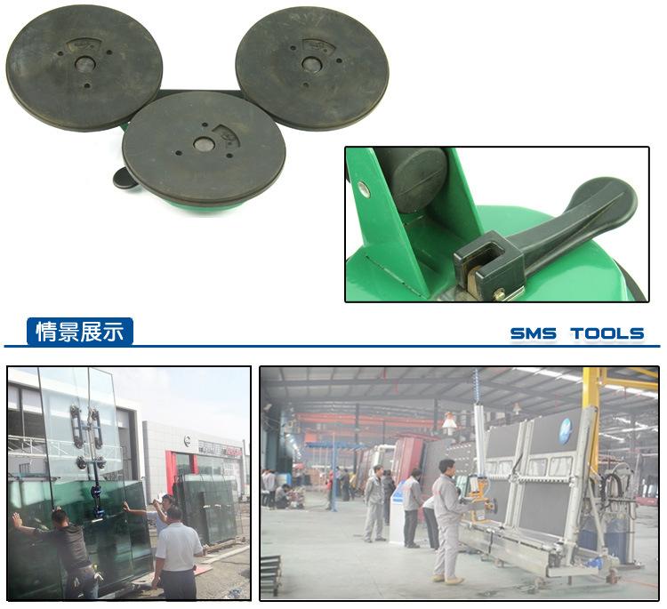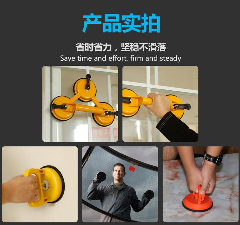 La ventosa de vidrio está hecha de aleación de aluminio fundido a presión, que es fuerte y duradera.La superficie es de pintura metálica y la almohadilla de goma está hecha de goma.Fuerte succión, fuerza de succión 150KG,Puede ser personalizado por OEM.