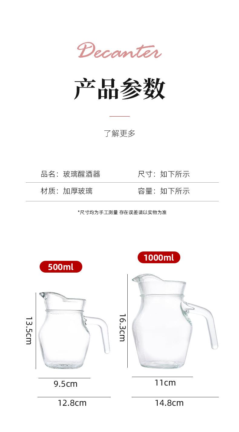 Venta al por mayor nuevo vidrio pequeño jarra de lazo jarra de jugo jarra de cerveza jarra para embolsar de hotel coctelera 500ml 1000ml