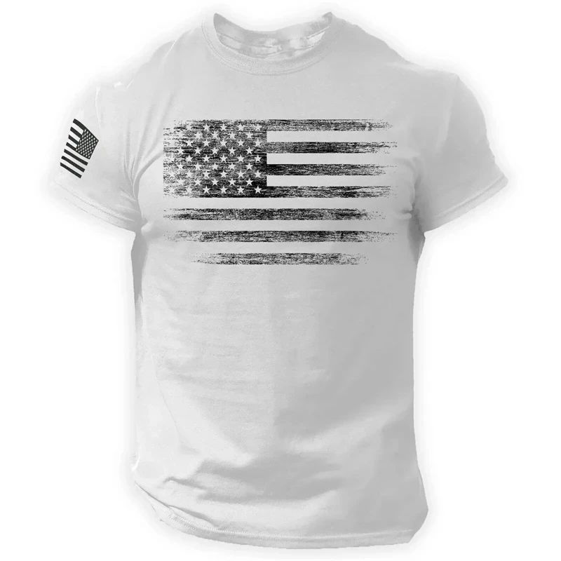 Camiseta Nueva de Entrenamiento Fitness para Hombre de Secado Rápido con Estampado 3D de Patrón de Bandera Americana Moda Top para Hombre