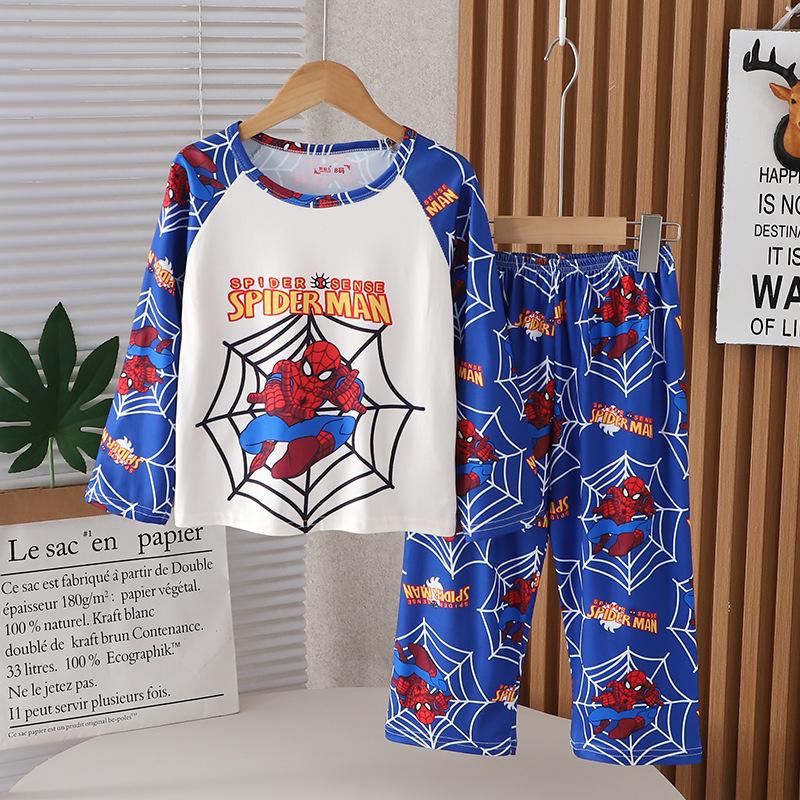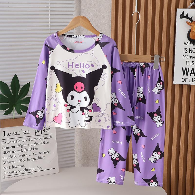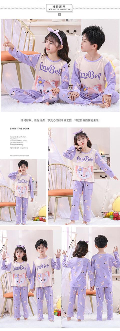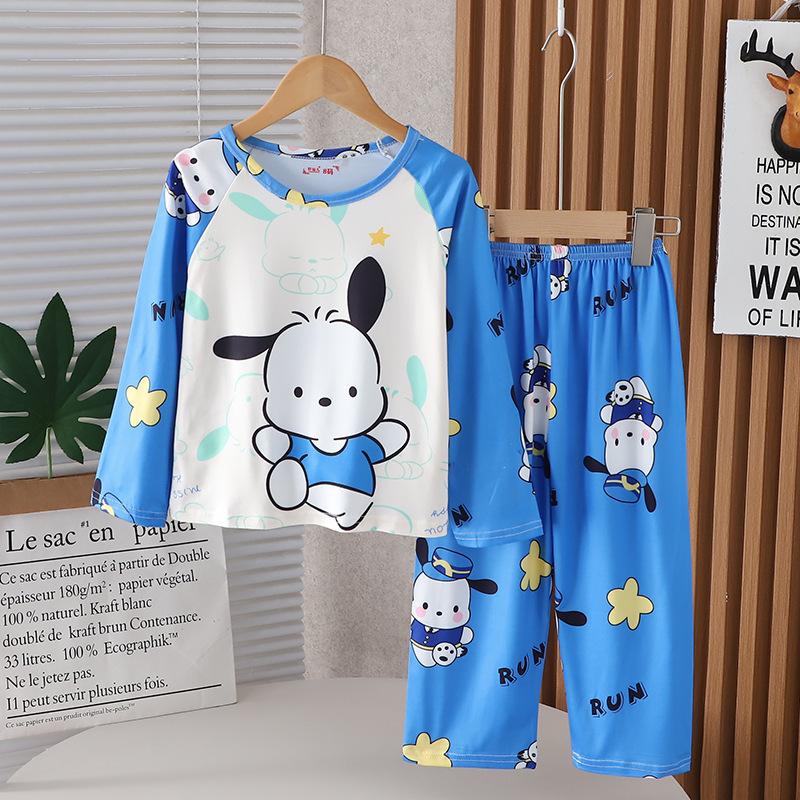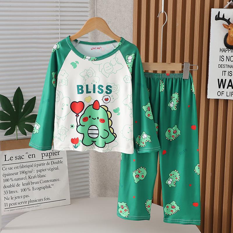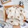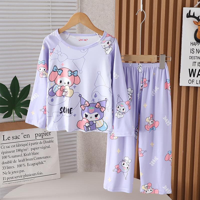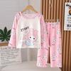 Traje de ropa de casa de verano para niños Traje de niña Estampado de dibujos animados Manga larga Pantalones Pijama Ropa de aire acondicionado para bebés de niño Ropa de moda