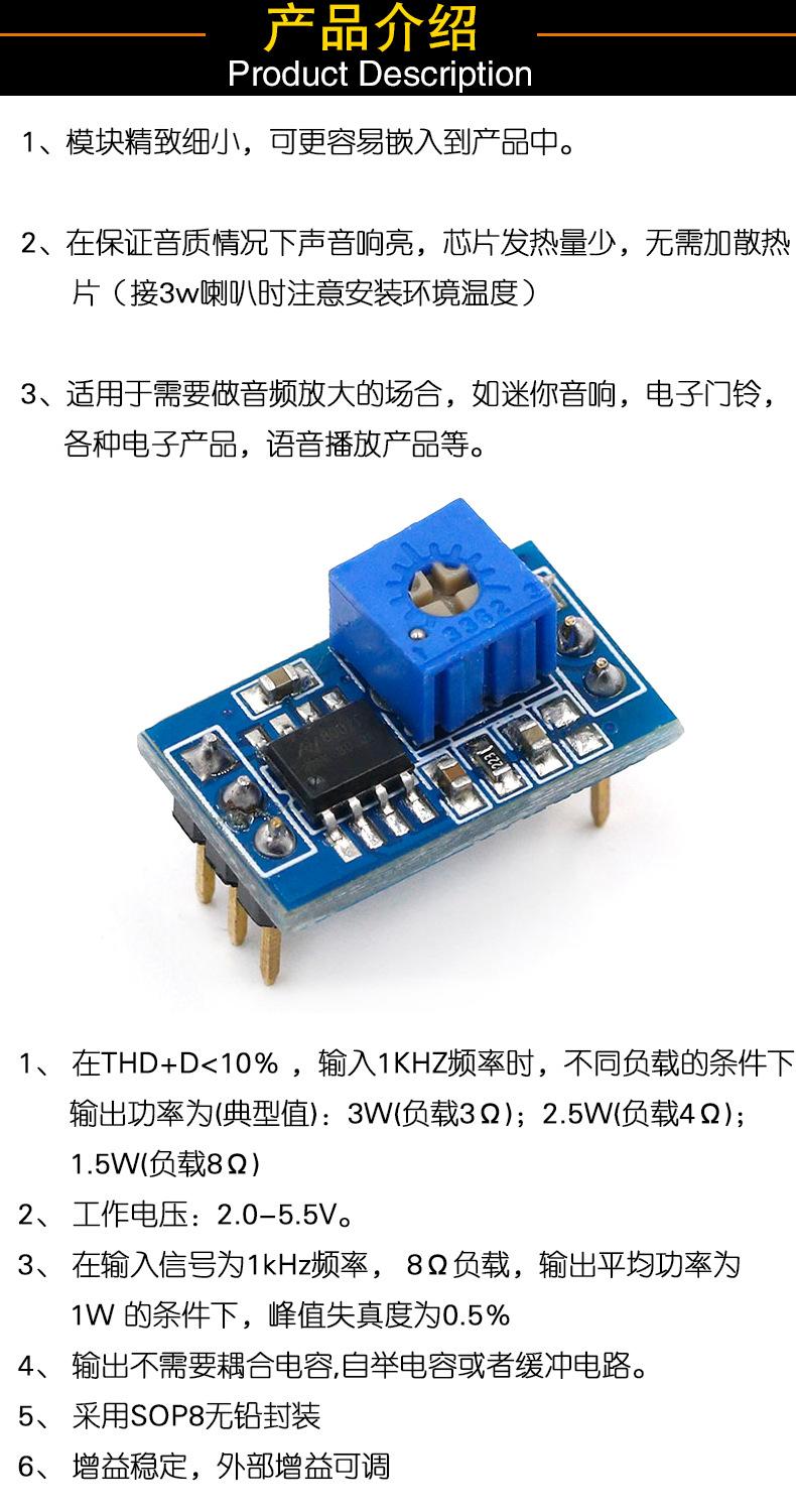 Módulo amplificador de potencia pequeño HXJ8002, módulo de audio compatible con módulo amplificador de audio de 3 W.