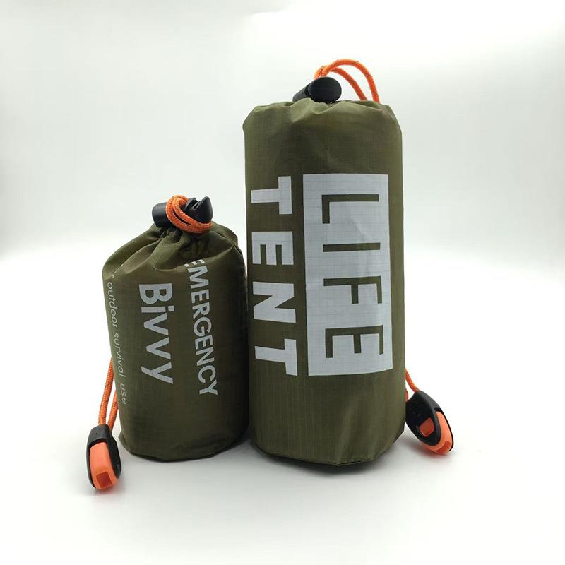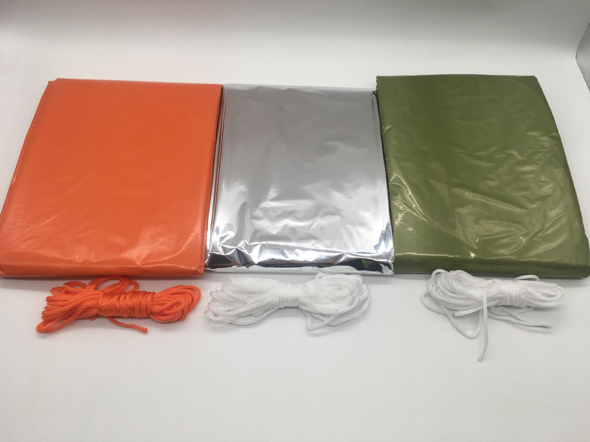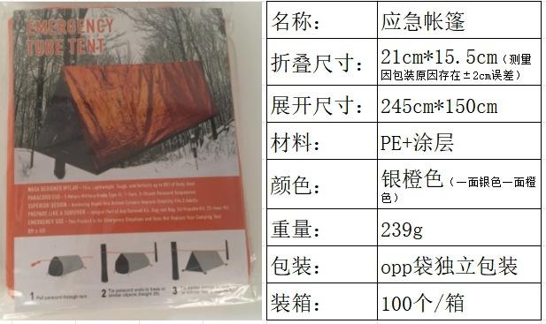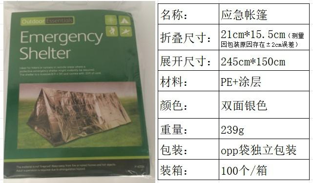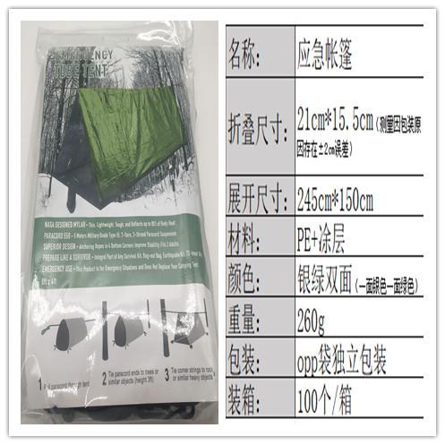 Tienda: Tienda plateada de doble cara, desplegada 245 cm x 150 cm