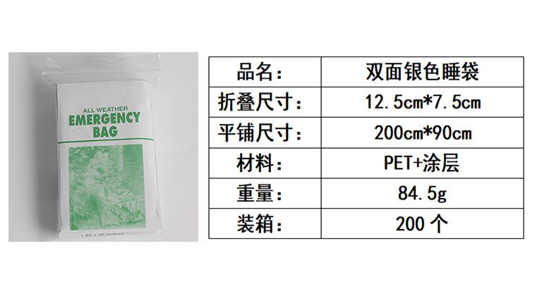 Saco de dormir: Saco de dormir plateado de doble cara, desplegado 200 cm x 90 cm