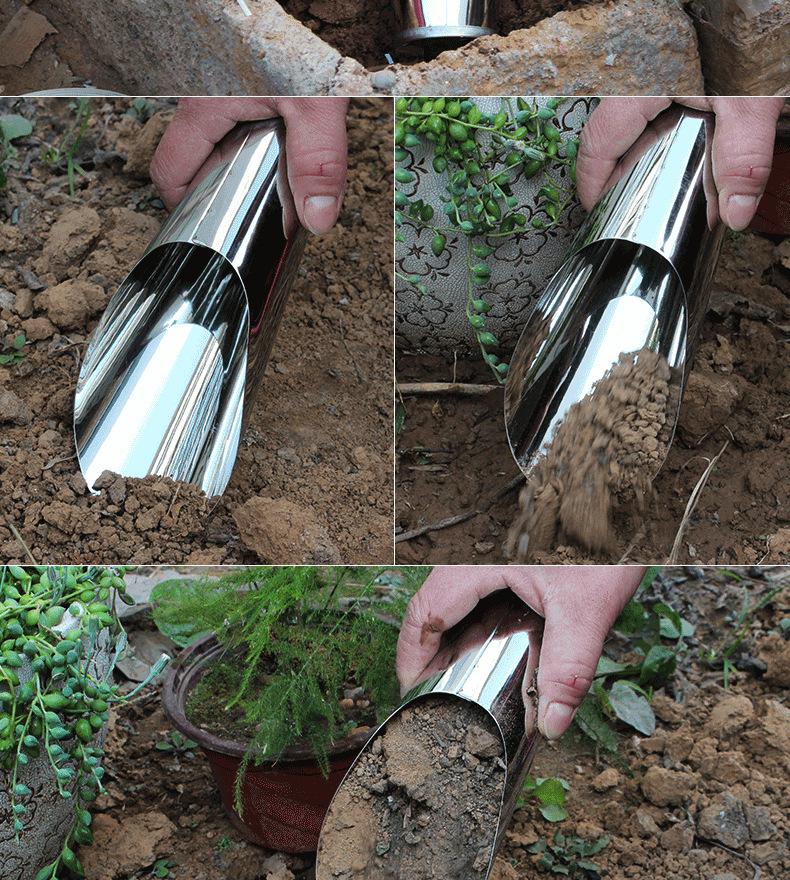 Cubo de Acero Inoxidable Pala Plantar Plantar Flores Hogar Planta Suculenta Cavar Tierra Trasplantar Pala Fertilizar Pala para Flores Cavar Tierra Pala Herramienta