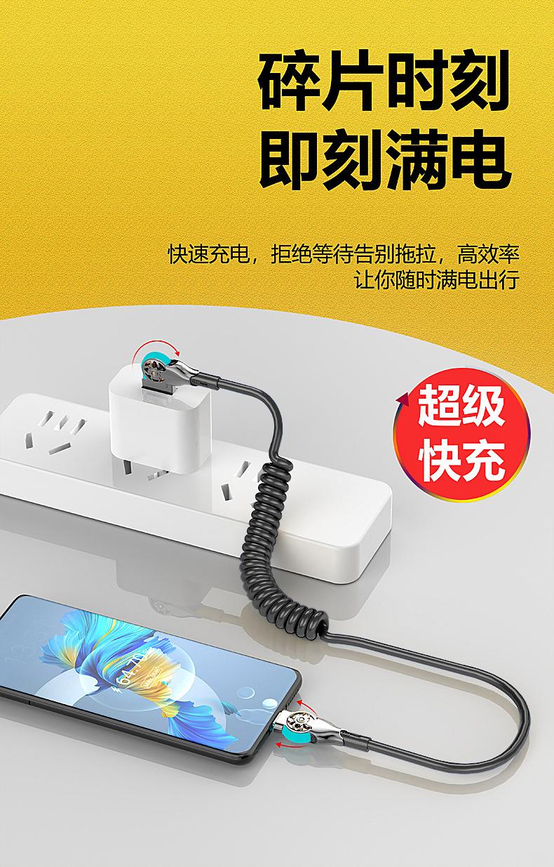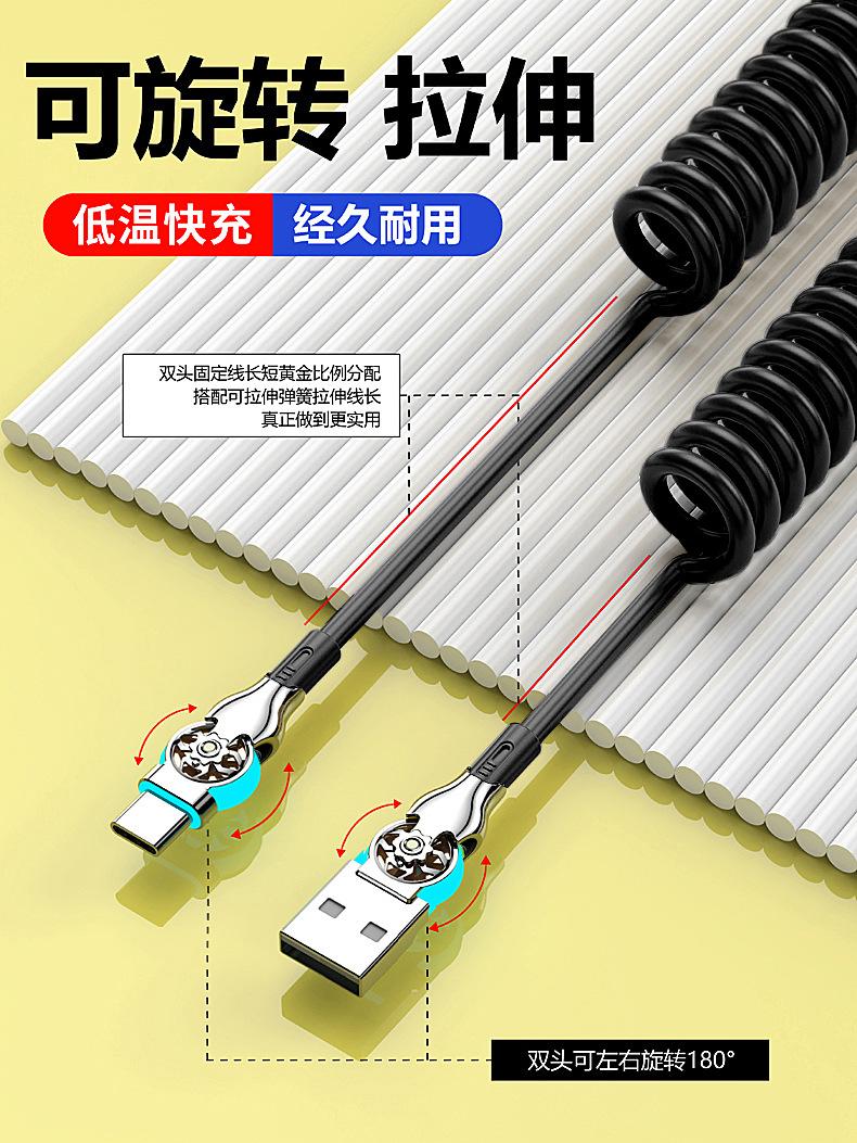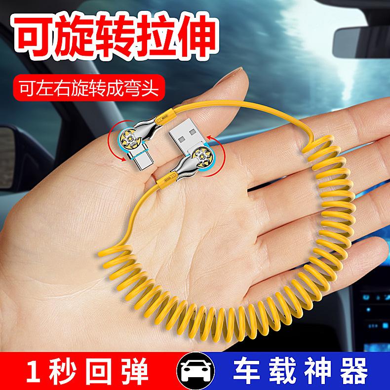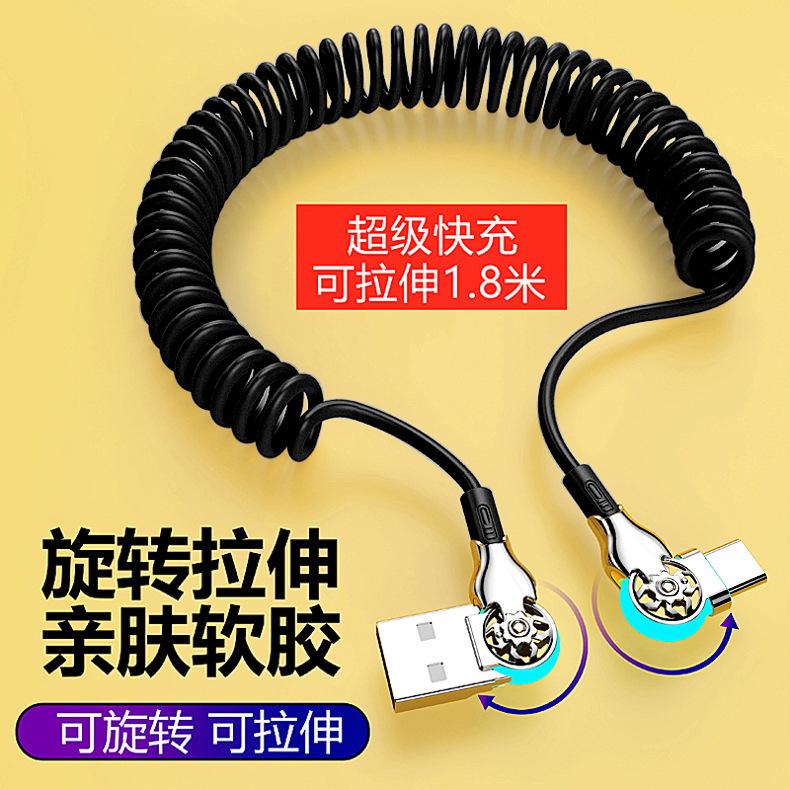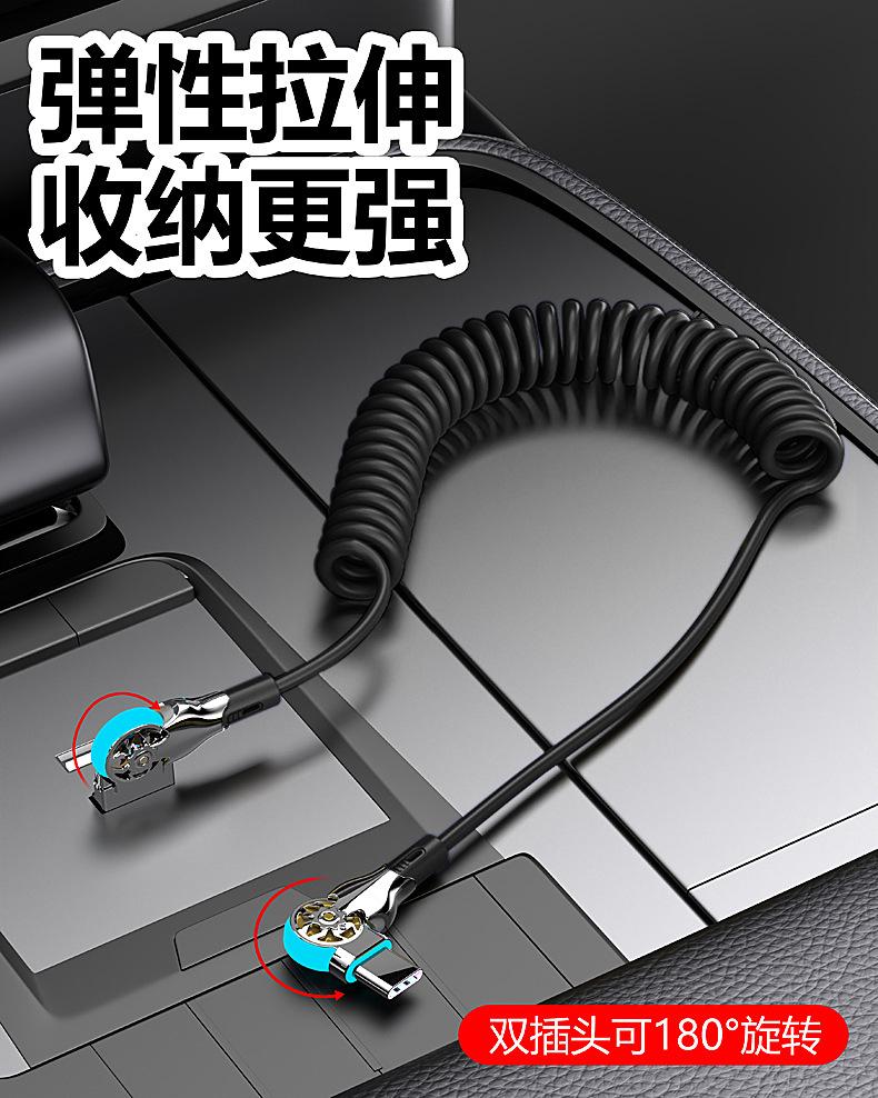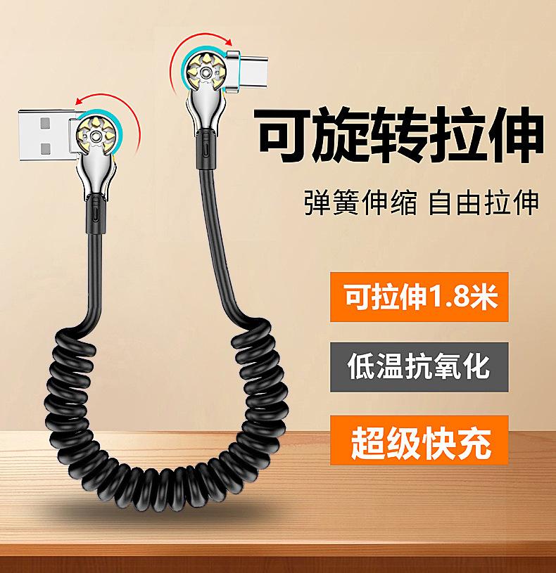 Cable de datos de carga rápida con resorte retráctil giratorio de doble codo para Apple, Android, Huawei Vivo y coche.