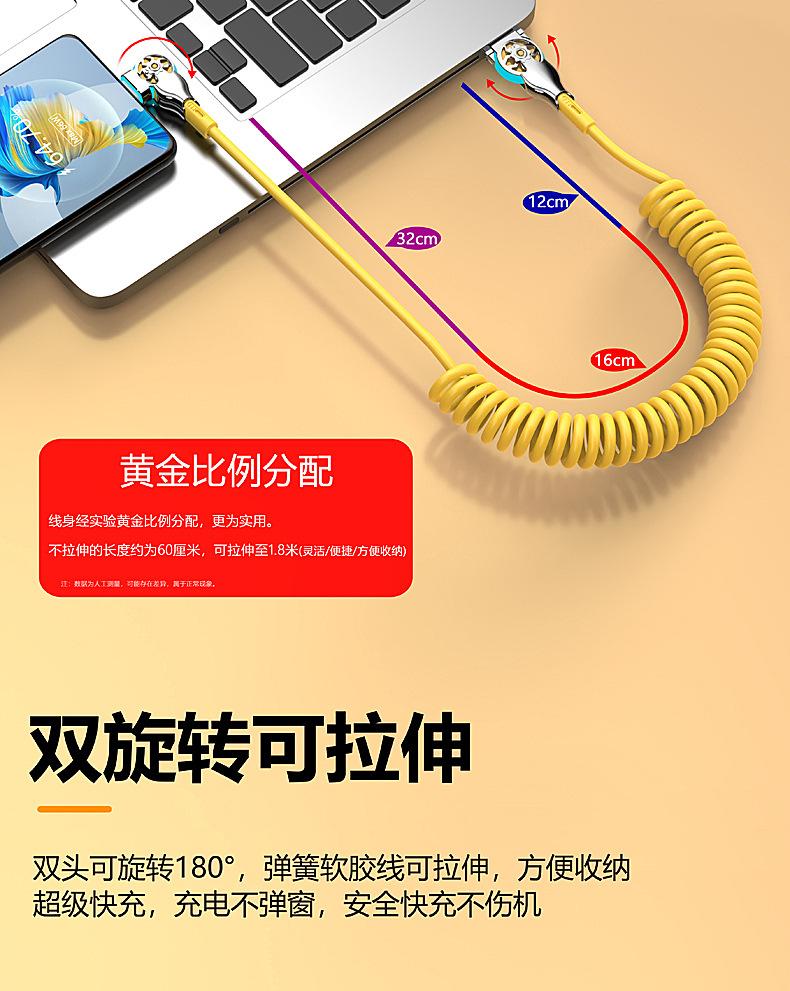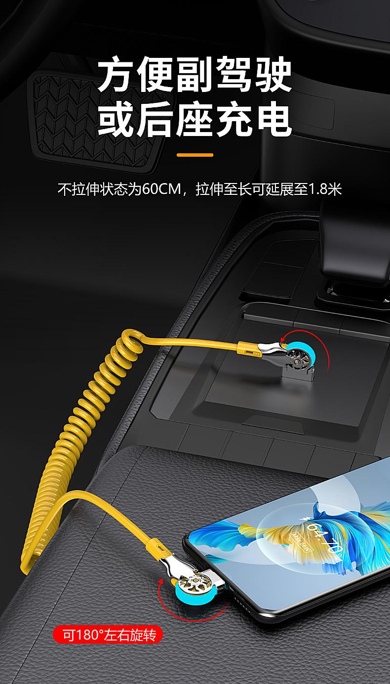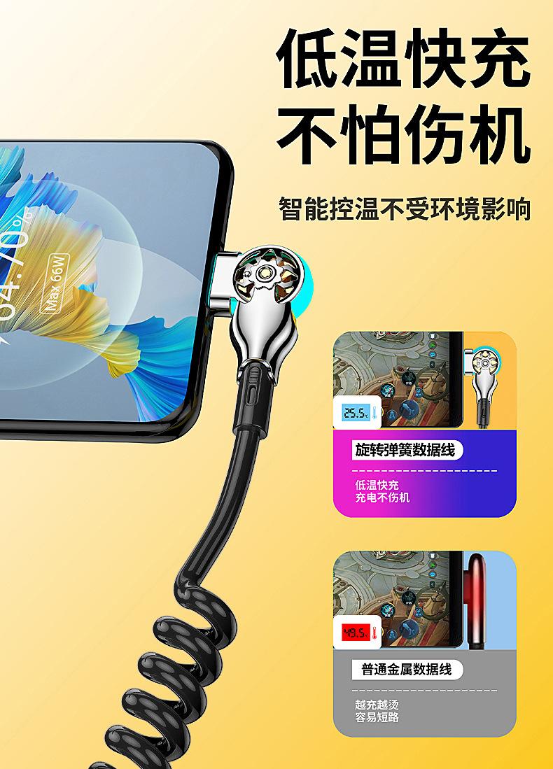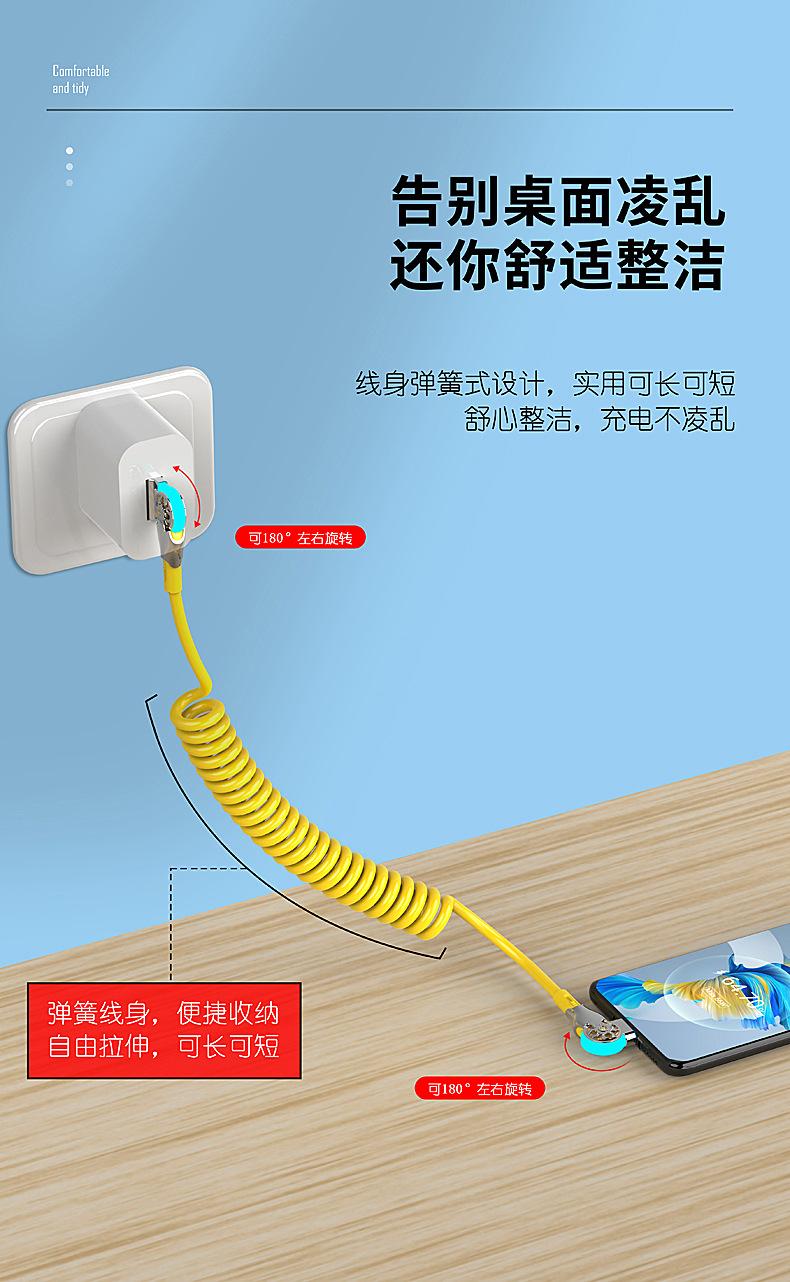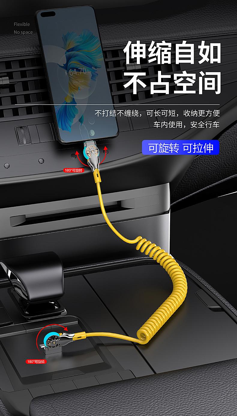 Cable de datos de carga rápida con resorte retráctil giratorio de doble codo para Apple, Android, Huawei Vivo y coche.