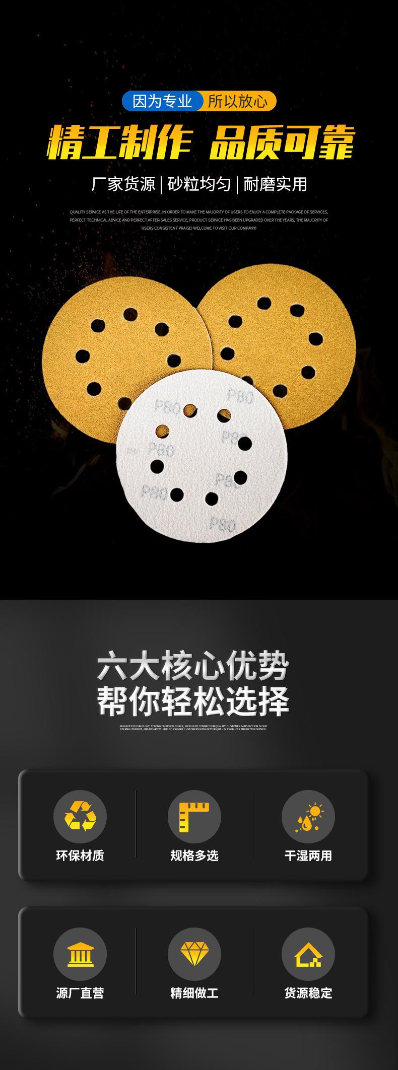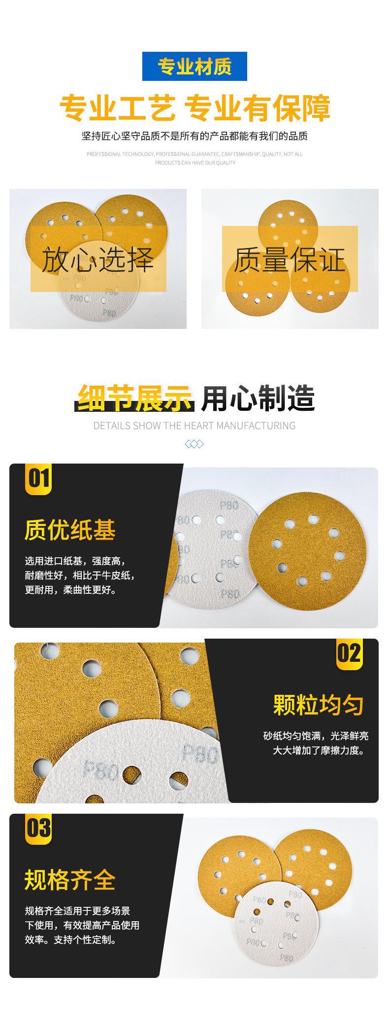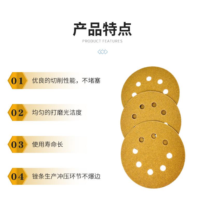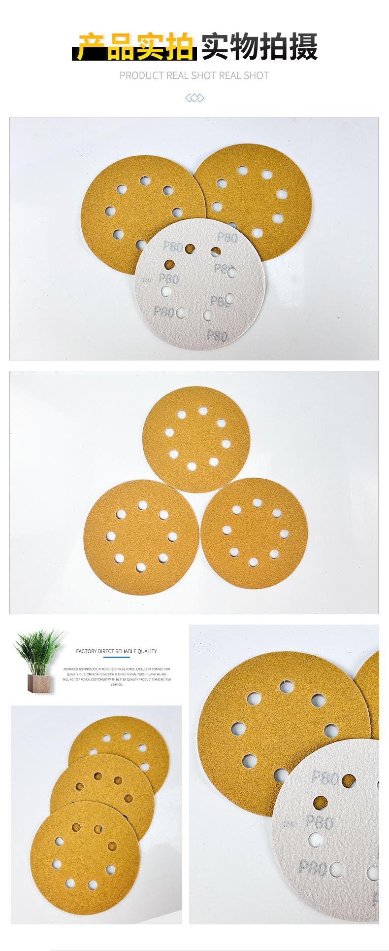 Papel de lija en seco con disco autoadhesivo, papel de lija flocado, arena amarilla, 5 pulgadas, 8 agujeros, papel de lija para pulir automóviles, venta al por mayor