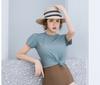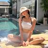 Bikini coreano de verano con contraste de colores, cintura alta, estilo retro, manga corta, escote pequeño, push-up, de acero, que cubre el vientre, traje de baño dividido para mujer