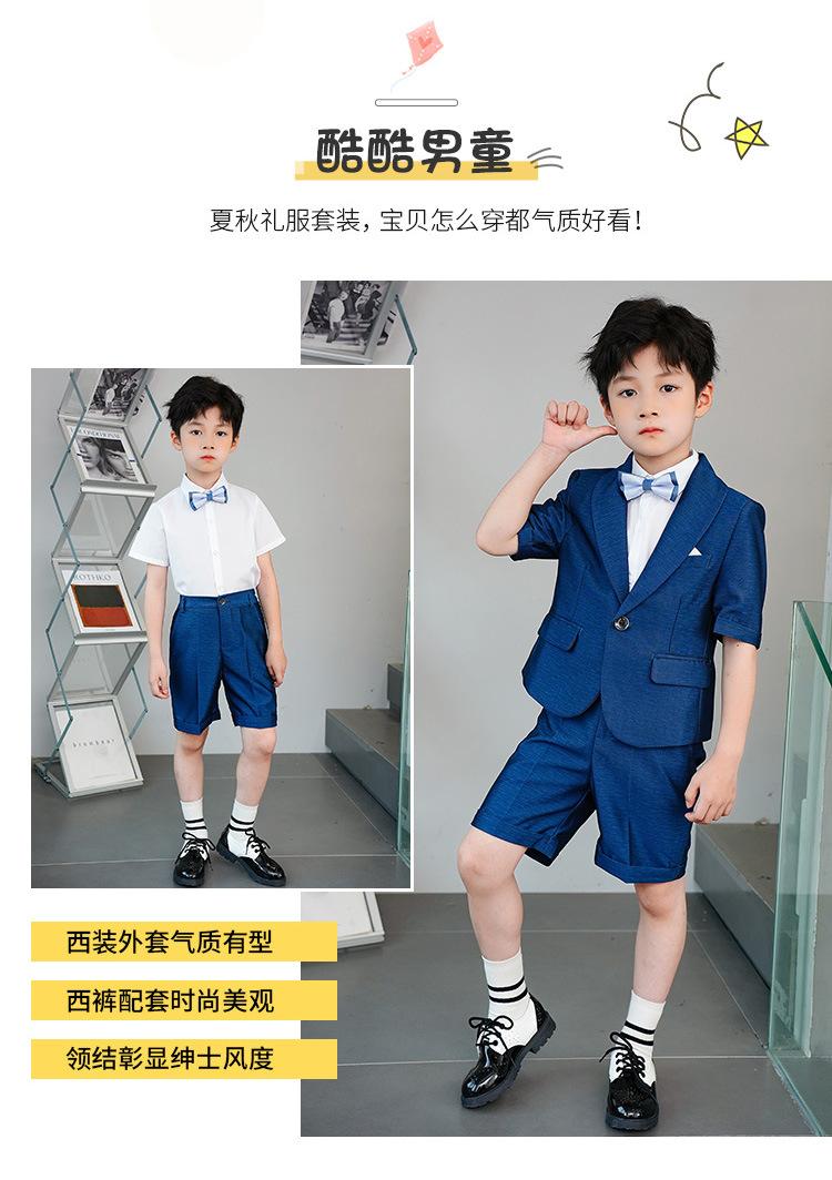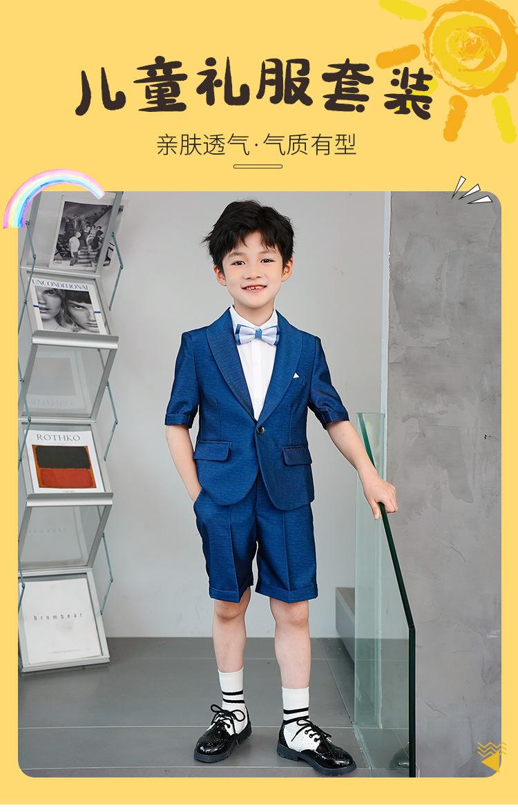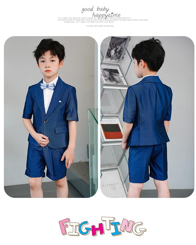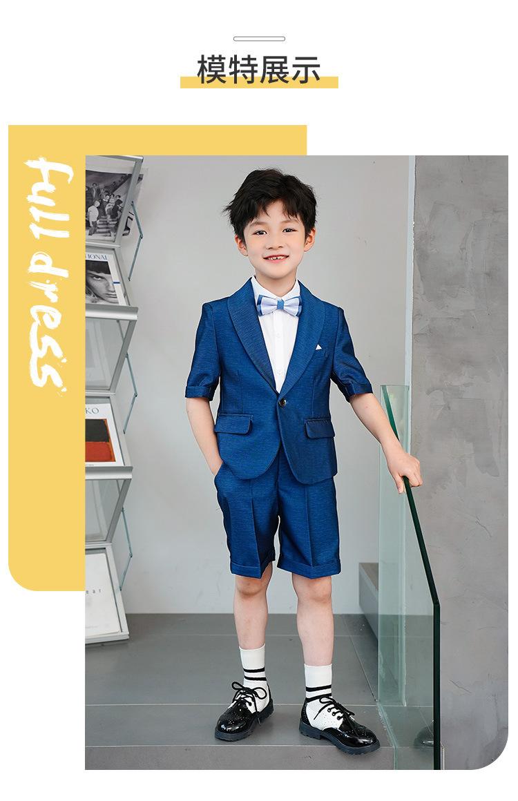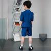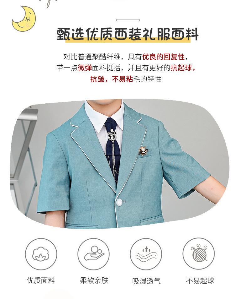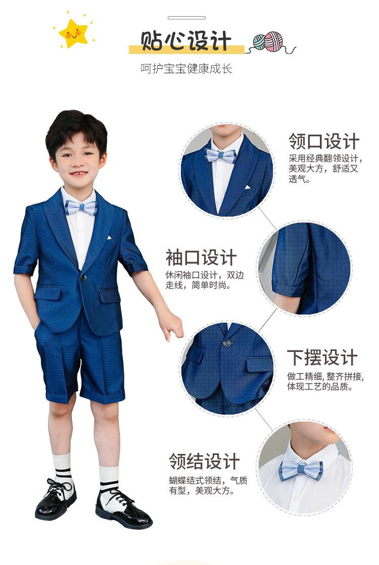 09588 Blue Jacquard Short-sleeved Jacket Shorts White Short-sleeved Shirt Double Light Blue Bow Tie