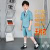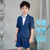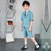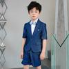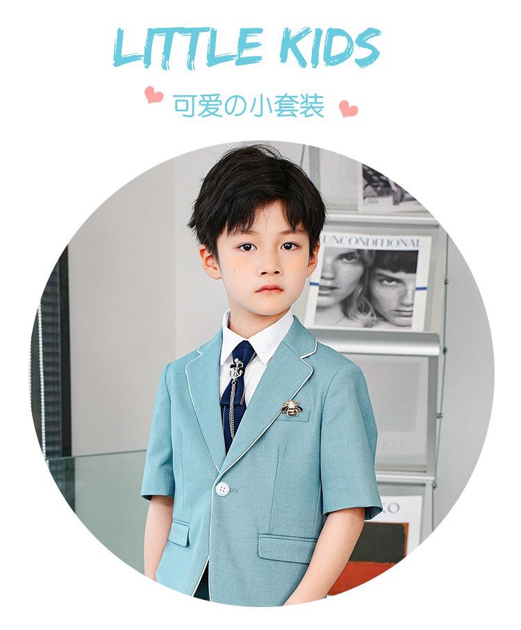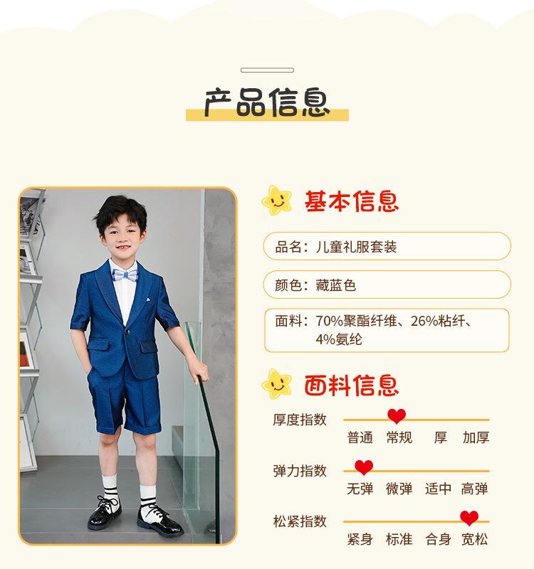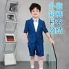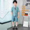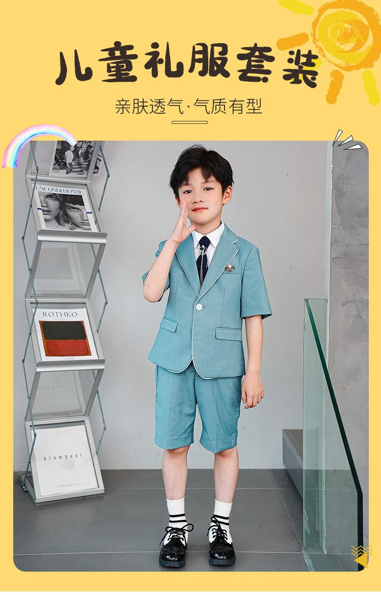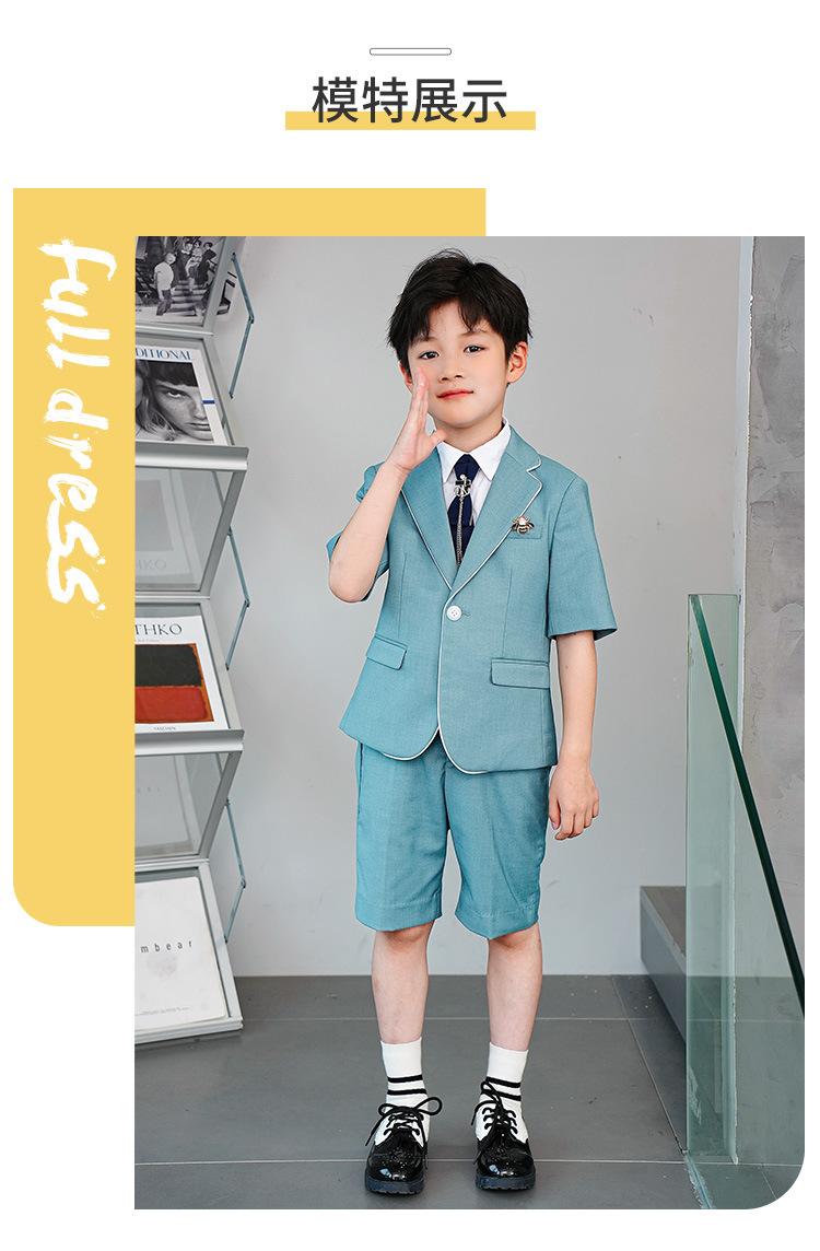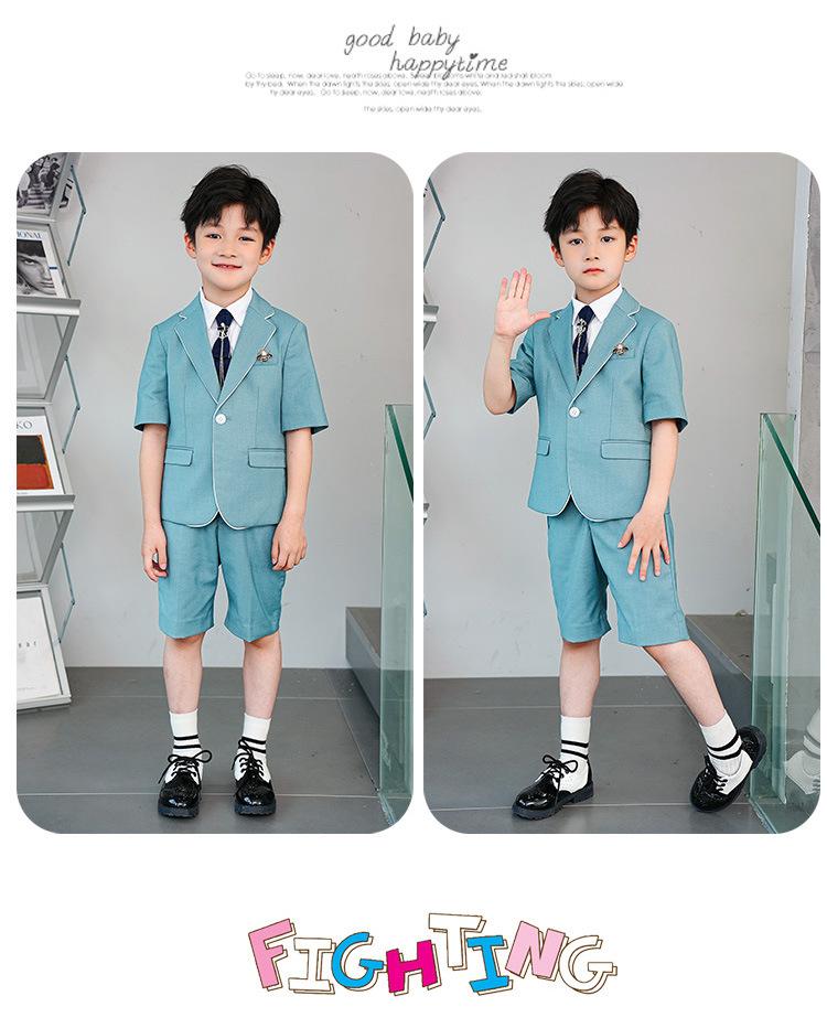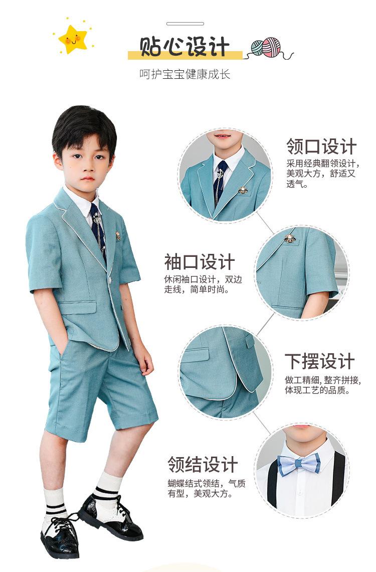09588 Blue Jacquard Short-sleeved Jacket Shorts White Short-sleeved Shirt Double Light Blue Bow Tie