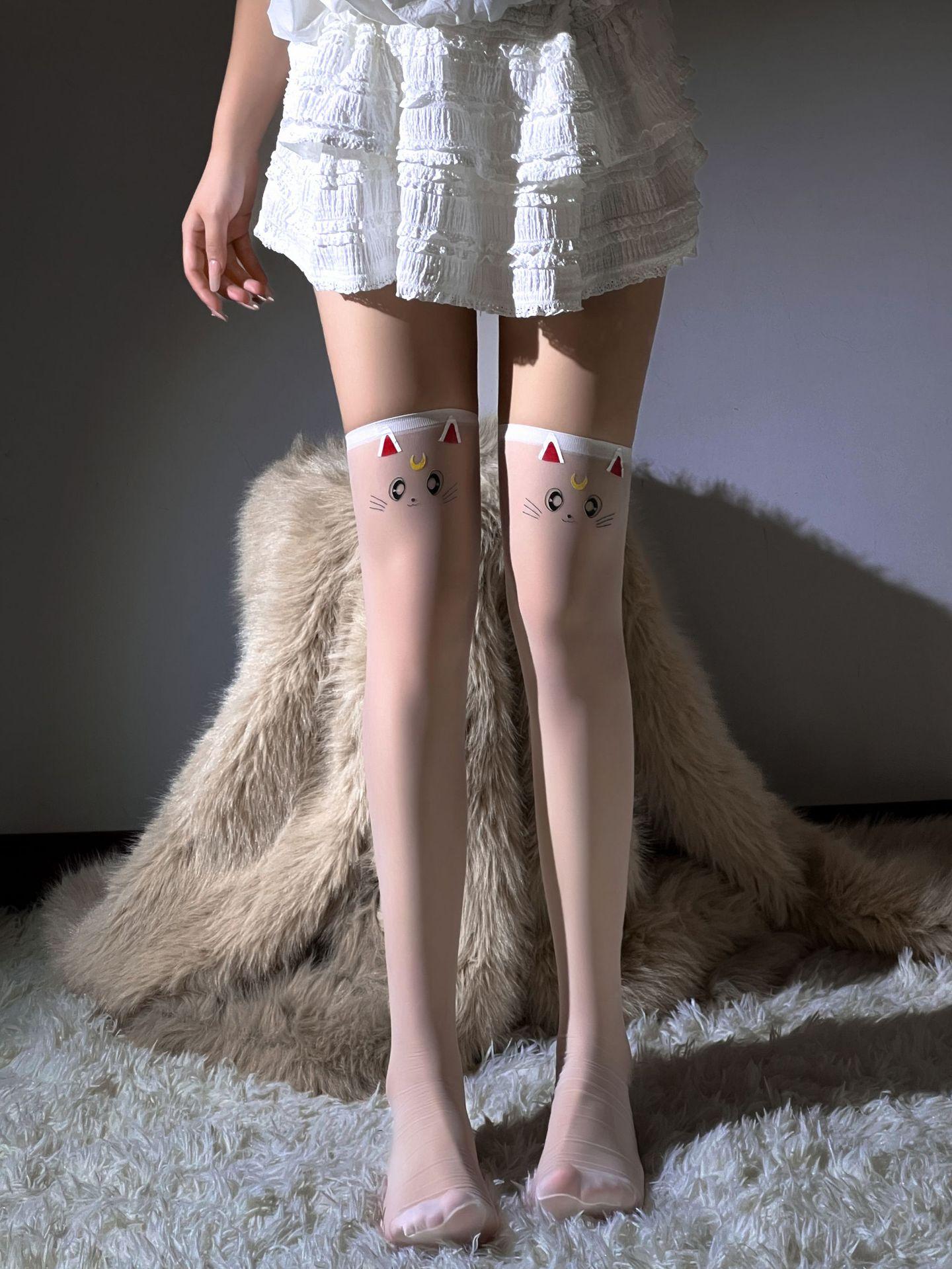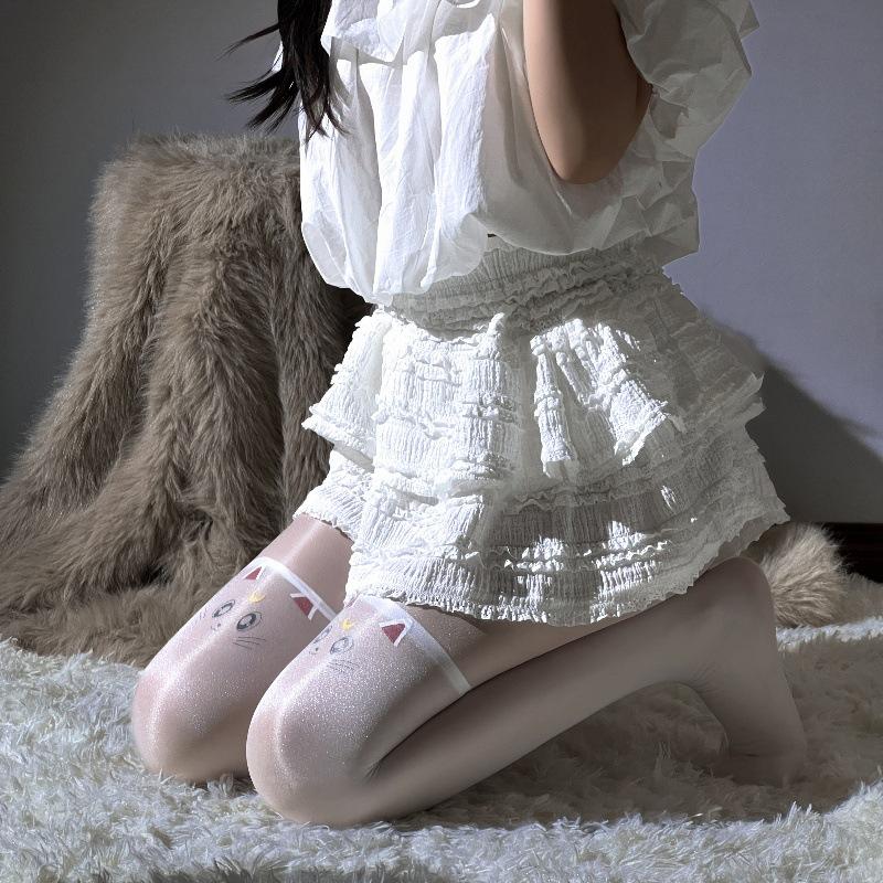 Single White Cat Socks, Silk [white cat socks outside white pantyhose]], Silk [White Cat Socks Outside White Free Socks]]