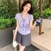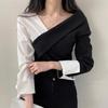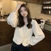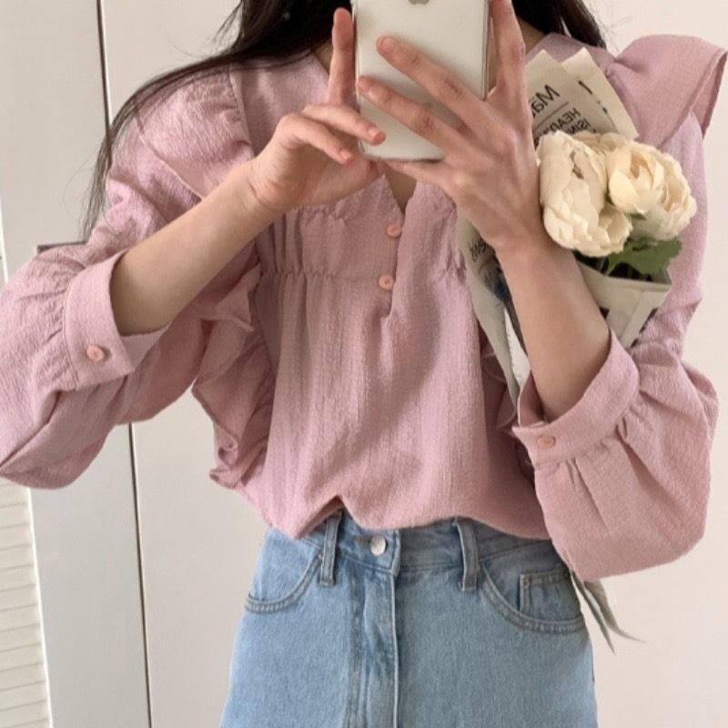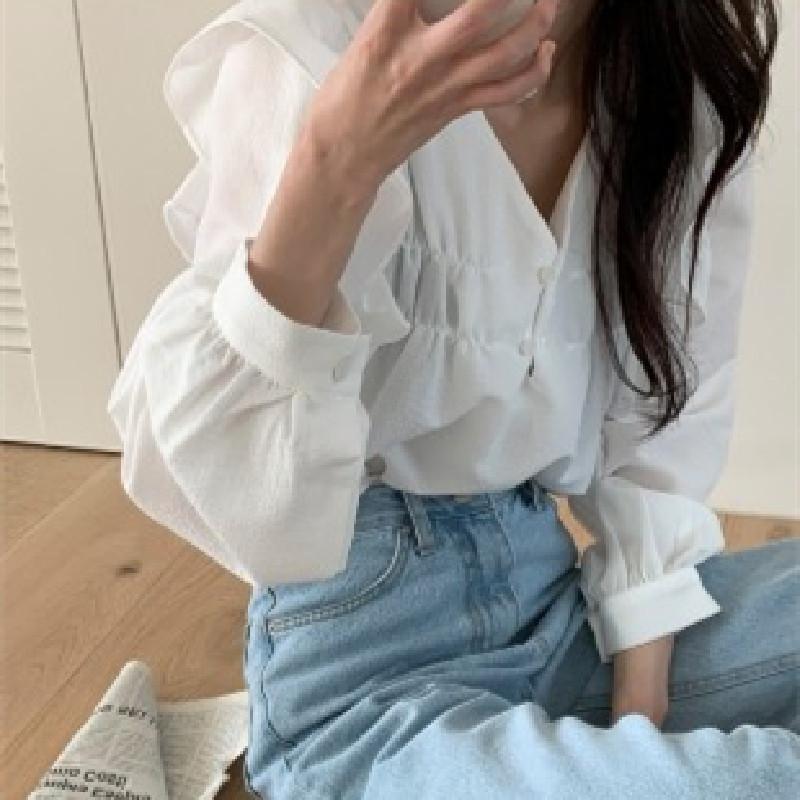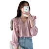 Camisa de manga larga con cuello en V y volantes, estilo coreano chic, dulce y delicado, antiedad, estilo extranjero, estilo nicho para mujer