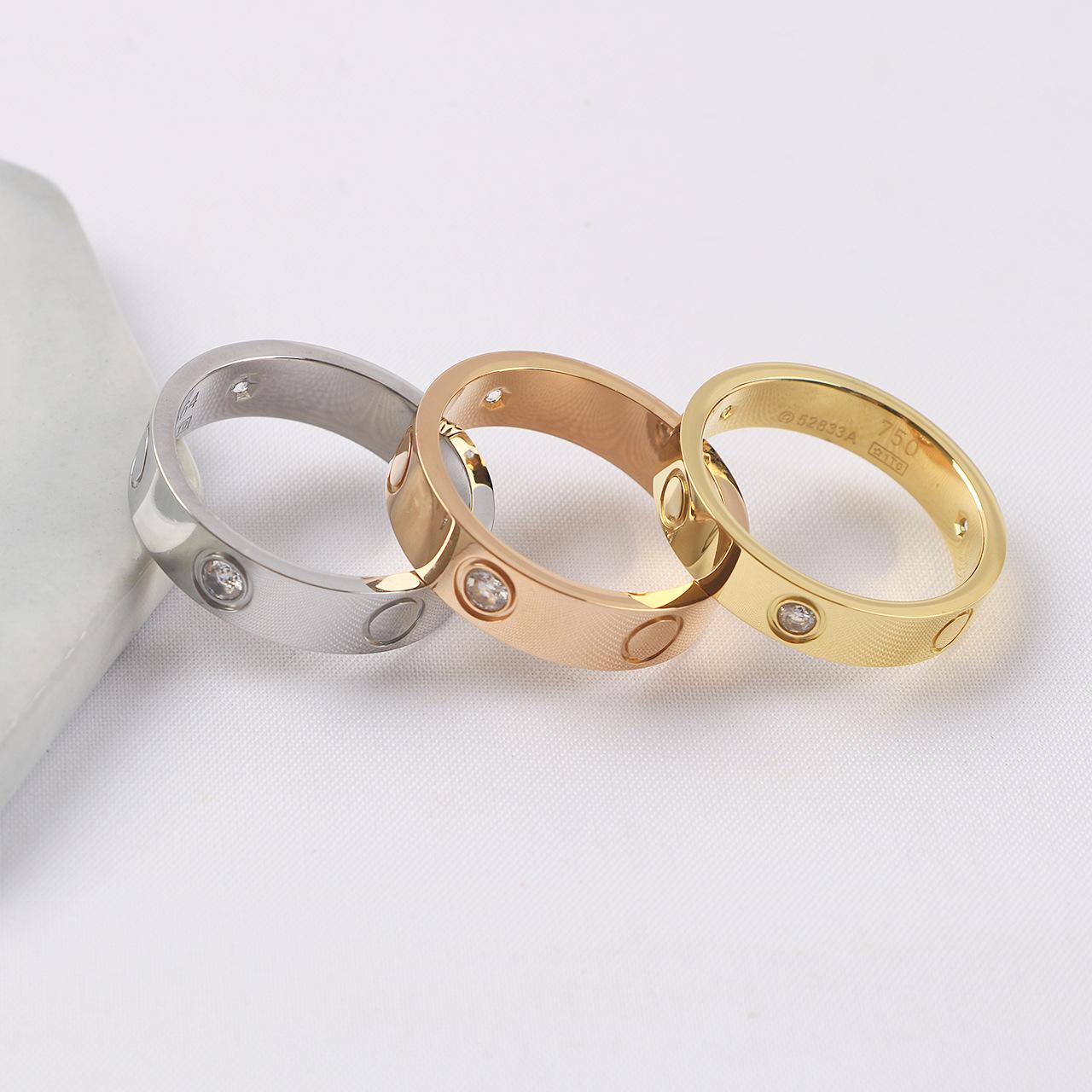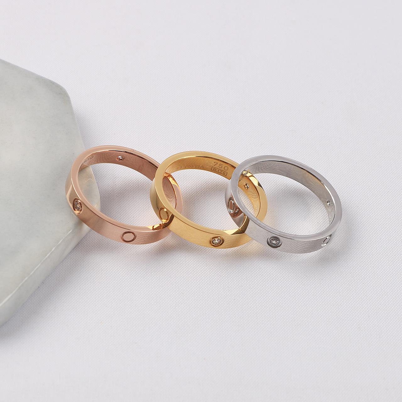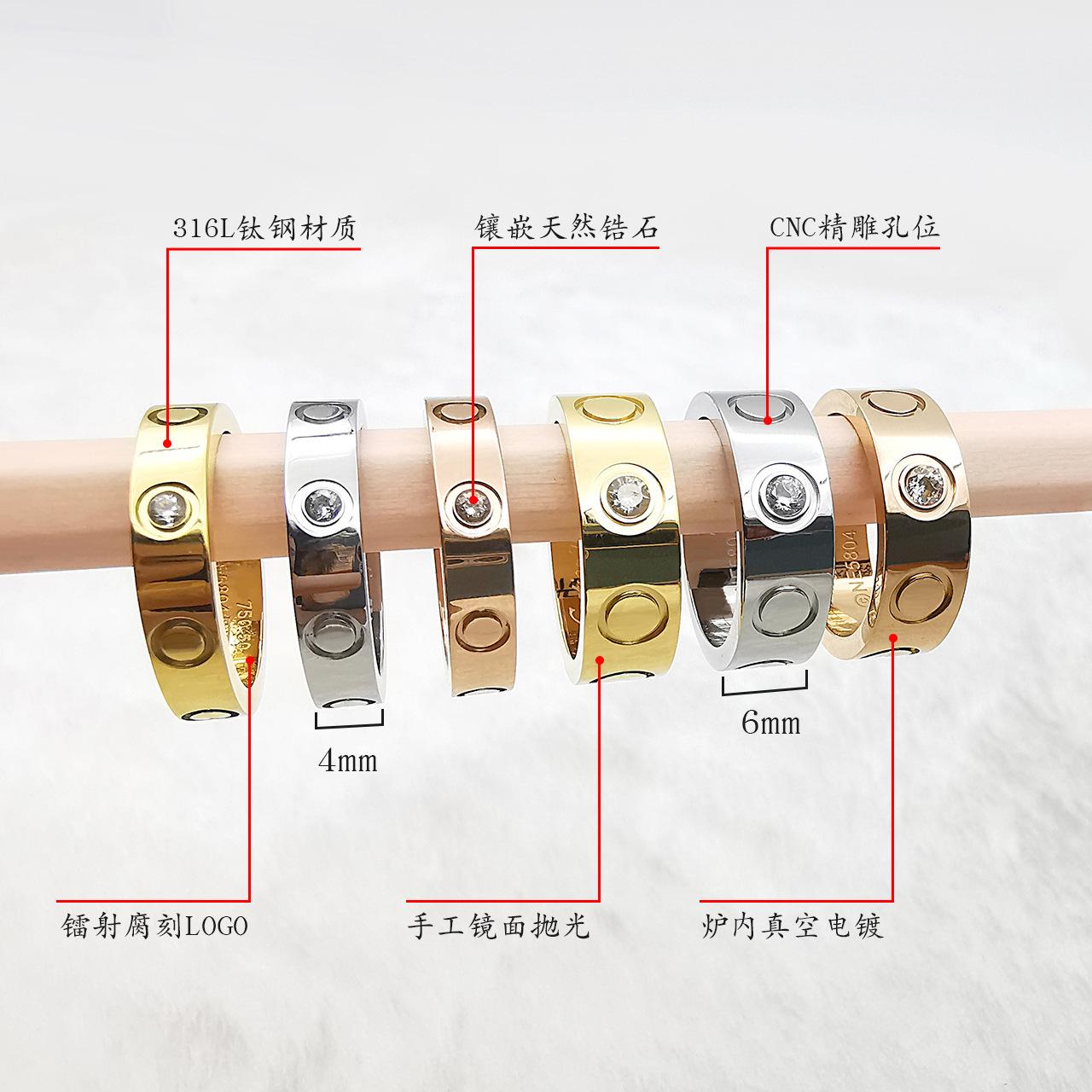 Anillo de acero de titanio con tarjeta de marea transfronteriza, anillo de amor, anillo clásico de oro de 18 quilates con diamantes. Suministro del fabricante.