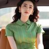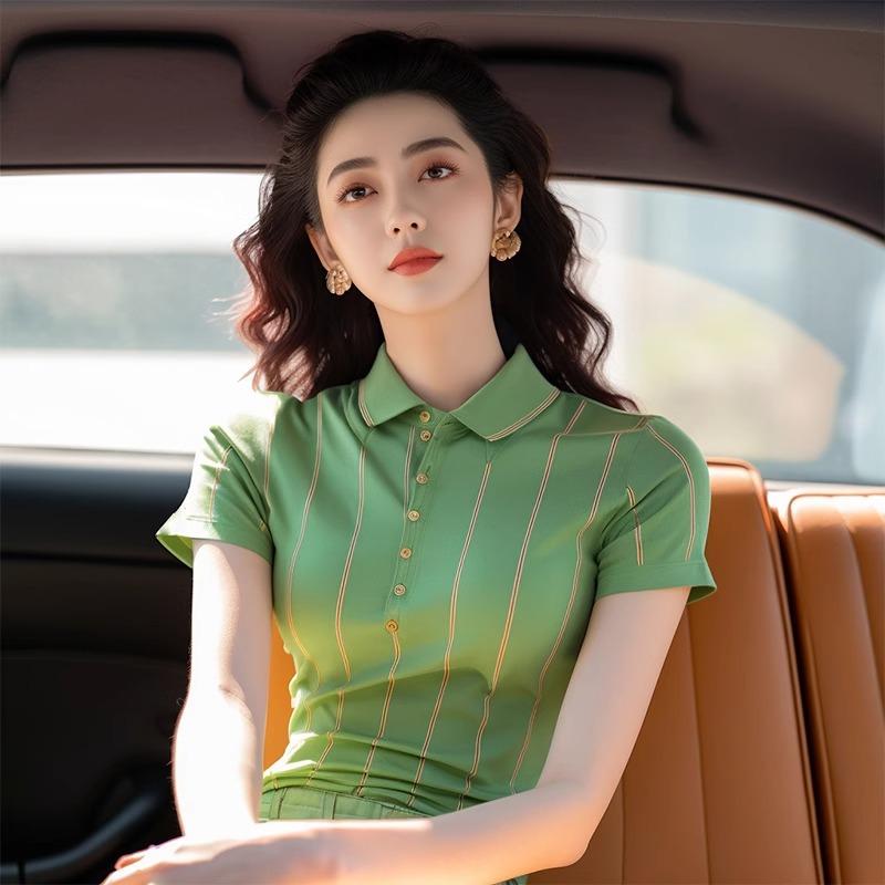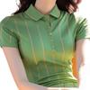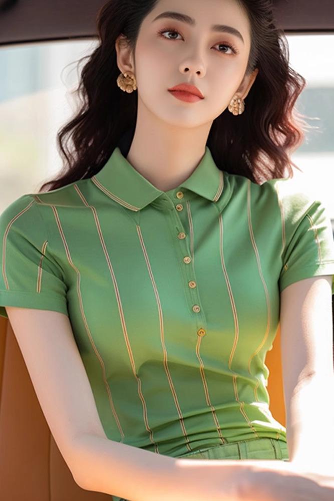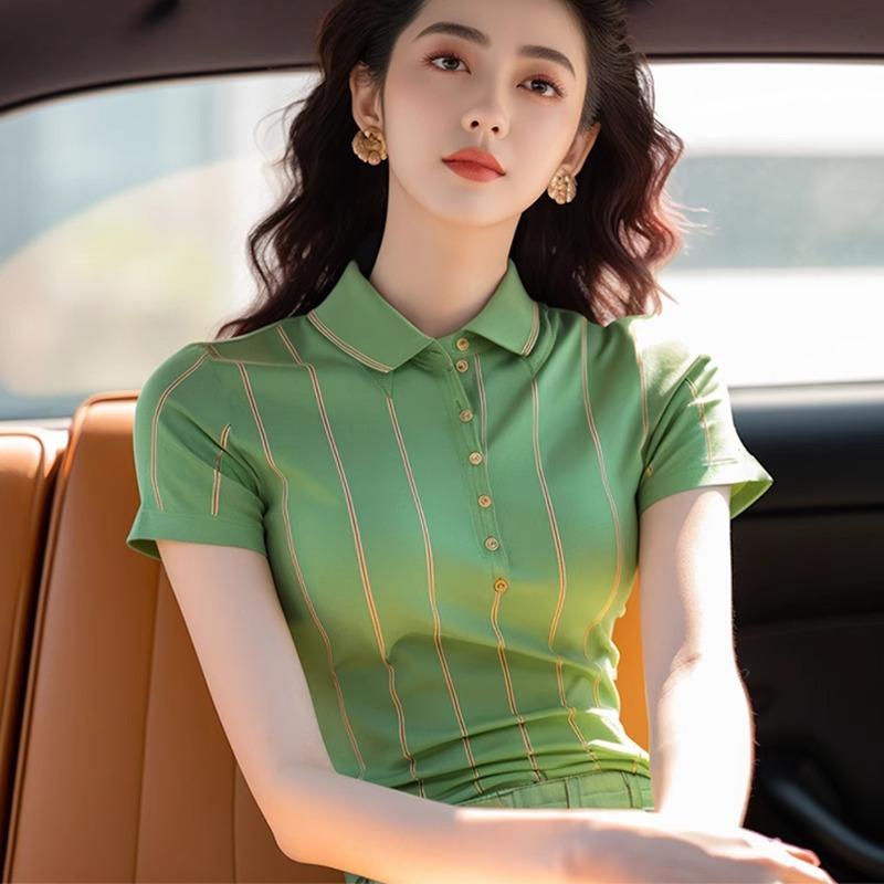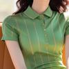 Camiseta polo de manga corta a rayas con hombros descubiertos para mujer, novedad de verano 2024, sencilla, elegante, informal, verde