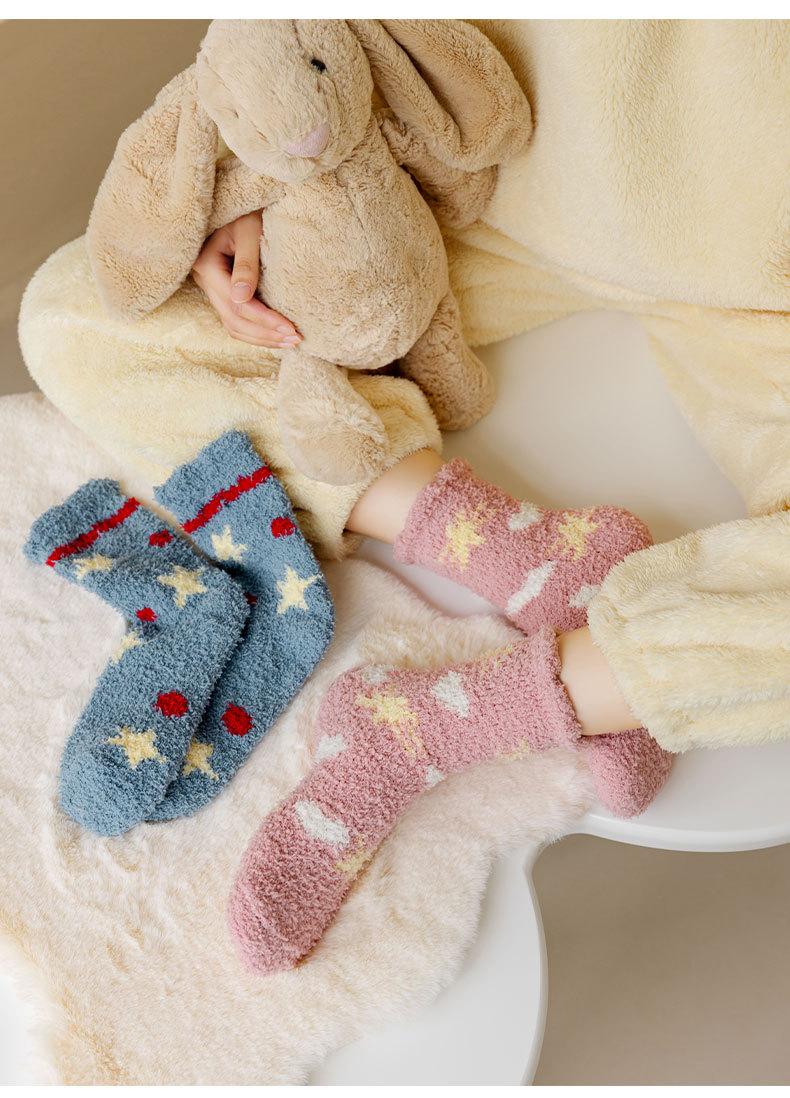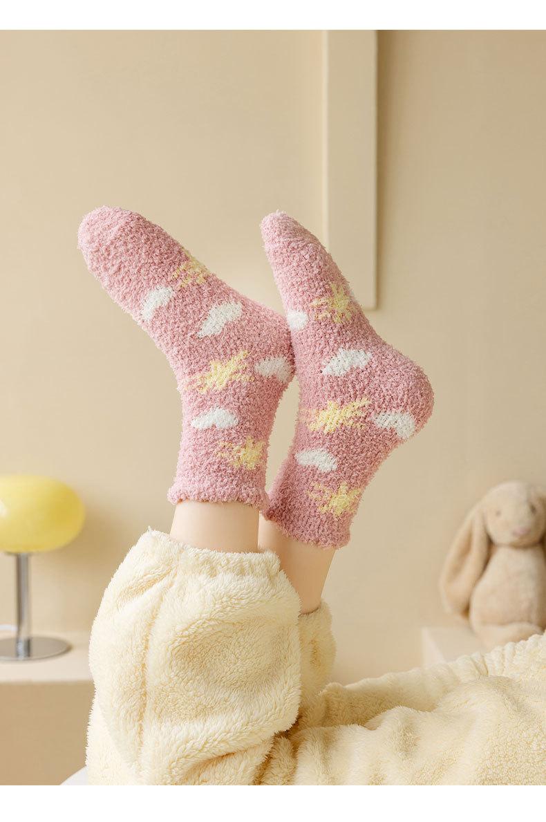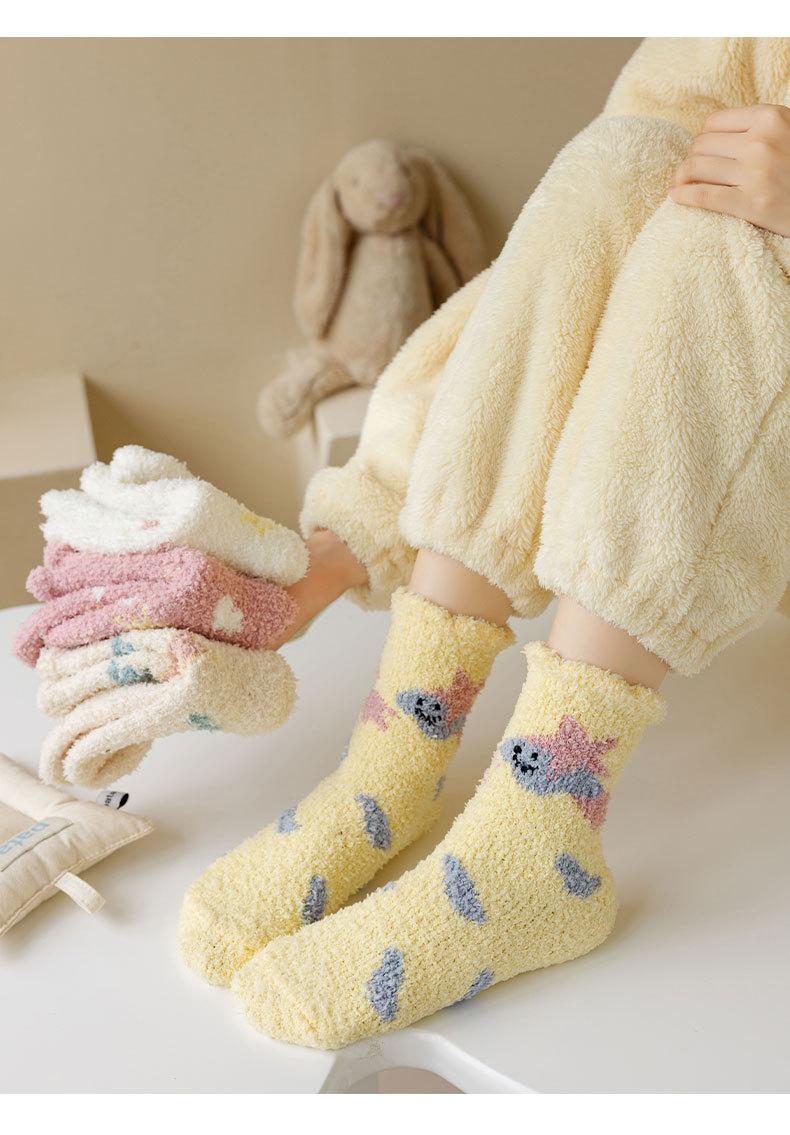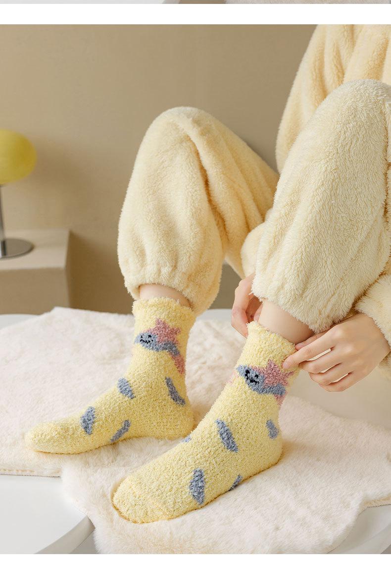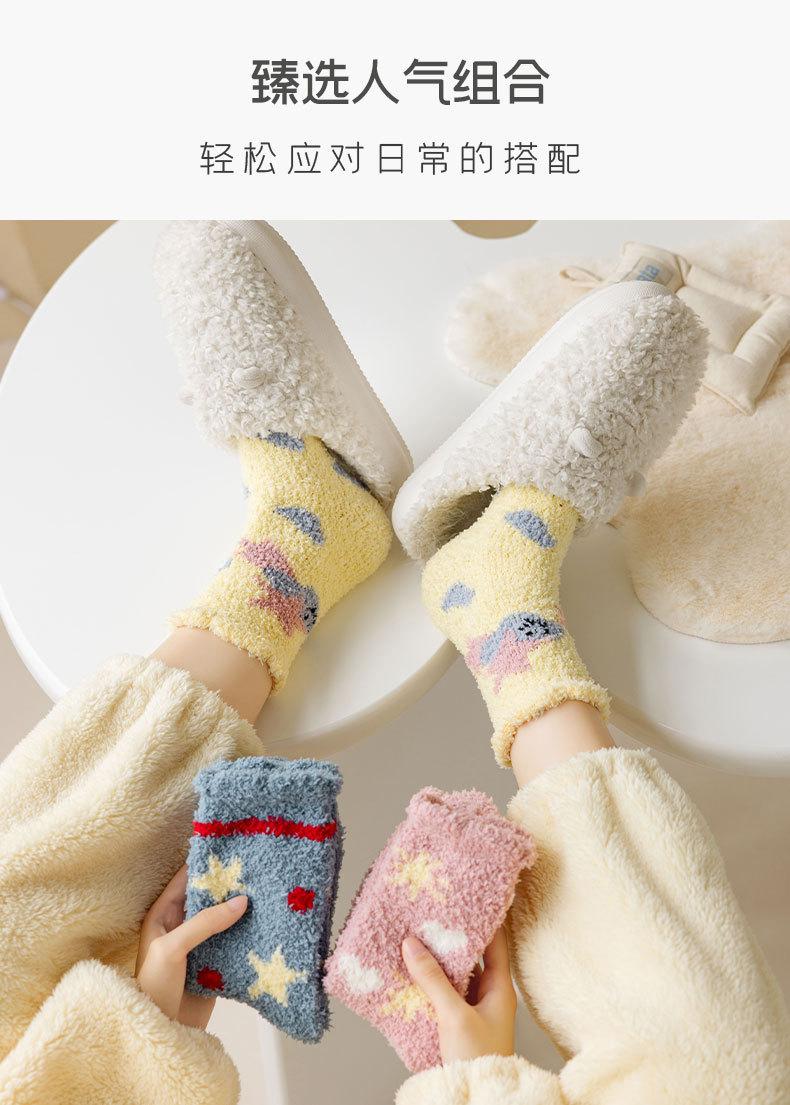 Calcetines de forro polar coral para mujer invierno engrosados cálidos para dormir calcetines de confinamiento calcetines de casa de piso lindos de dibujos animados sin pelusa