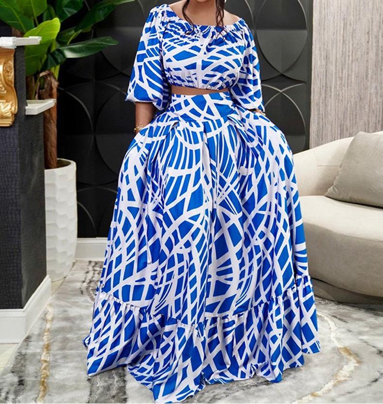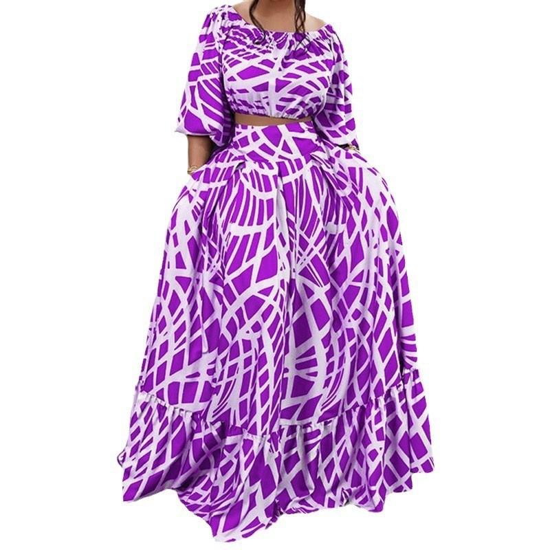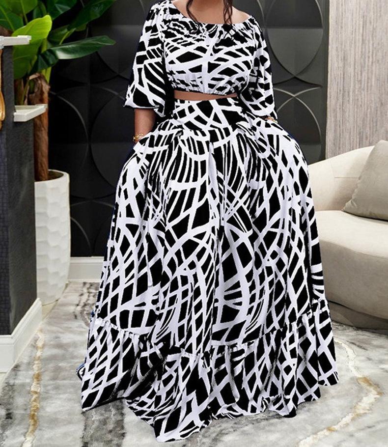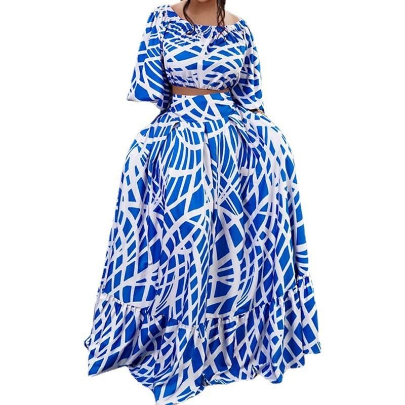 Transfronterizo 2025 Primavera Amazon Talla Grande Ropa de Mujer Elegante Falda Estampada Transfronteriza Traje de Moda