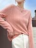 Ropa de Primera Línea Suéter 100% Lana Pura para Mujer Nuevo Suéter Jersey de Cuello Redondo Color Sólido Tejido Calado Trenzado Camisa Base