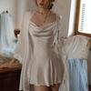 Verano Deseo Puro Nuevo Estilo Encaje Malla Francés Sentido de Alta Gama Ropa para el Hogar Seda de Hielo Pijama Sexy Camisón de Talla Grande para Mujer