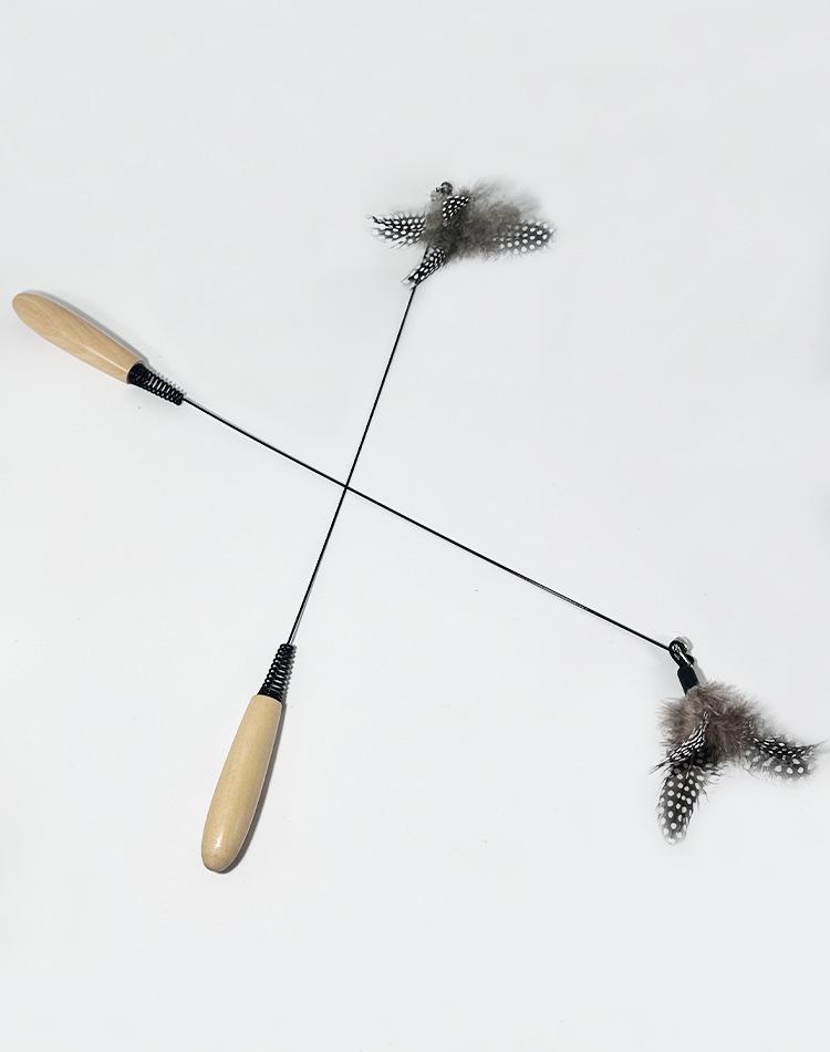 Polka dot wooden handle bell cat teasing stick, White cat funny stick, Black cat funny stick, Pink cat funny stick