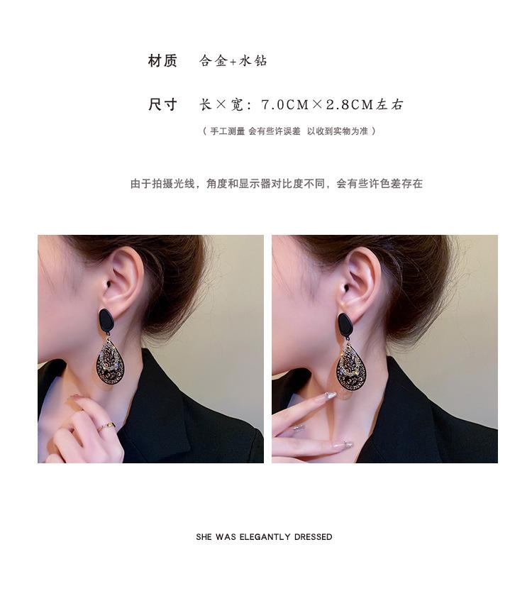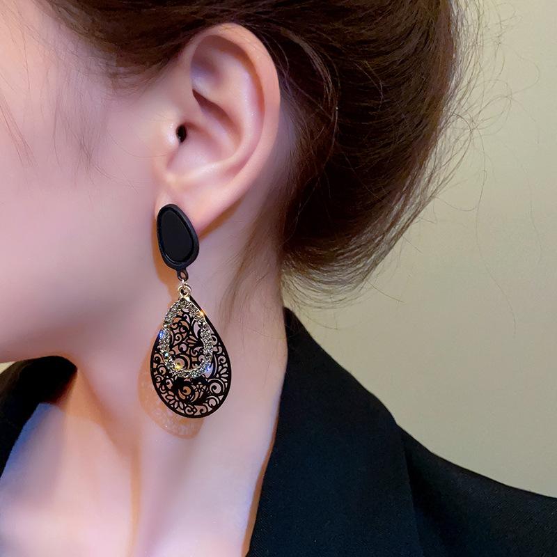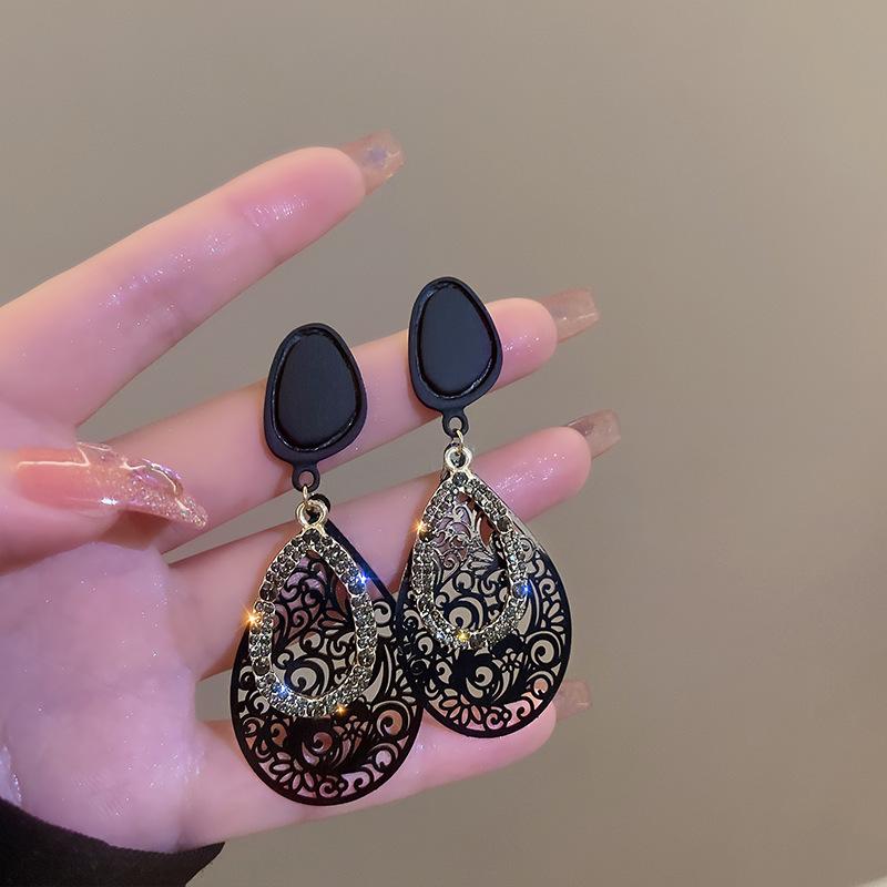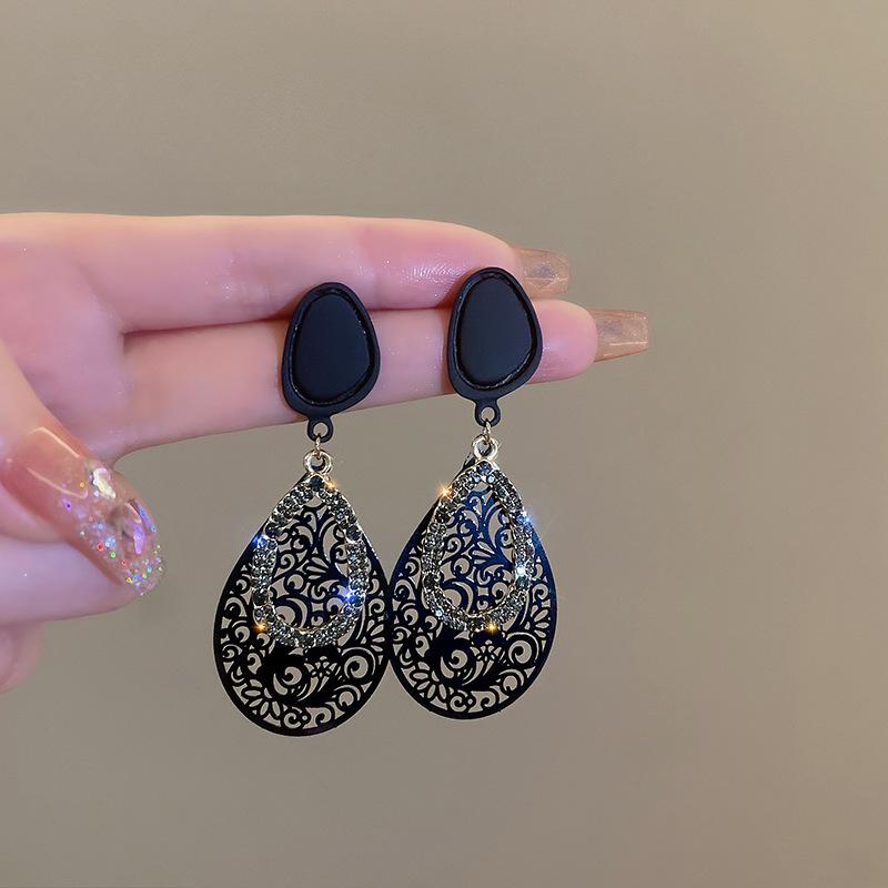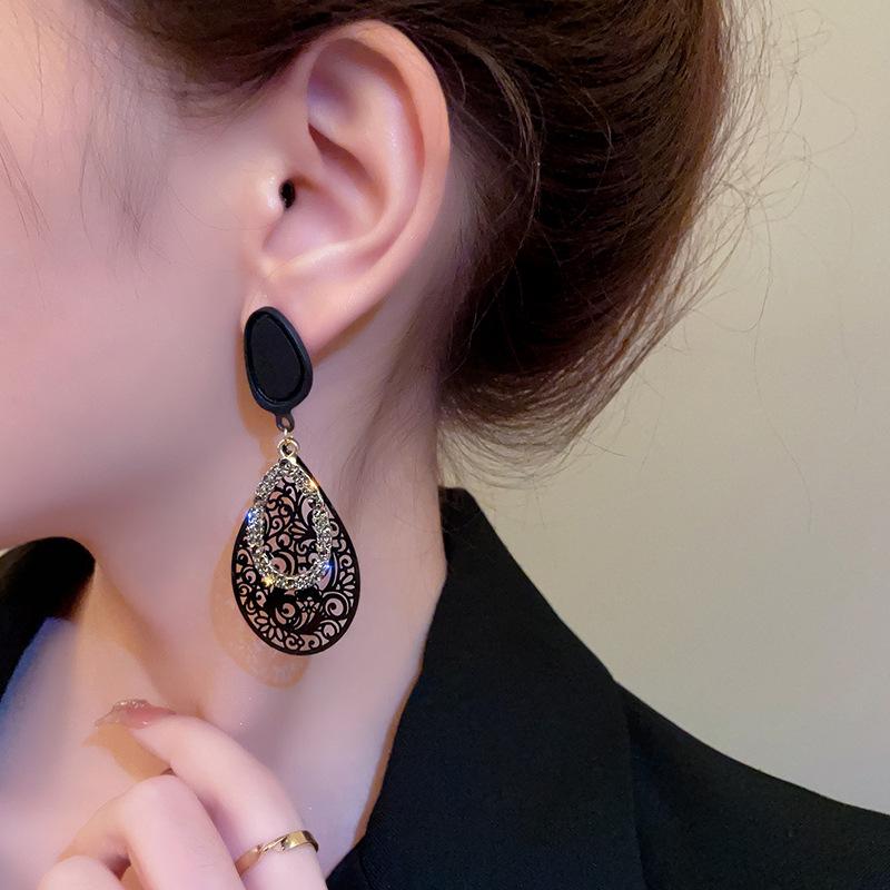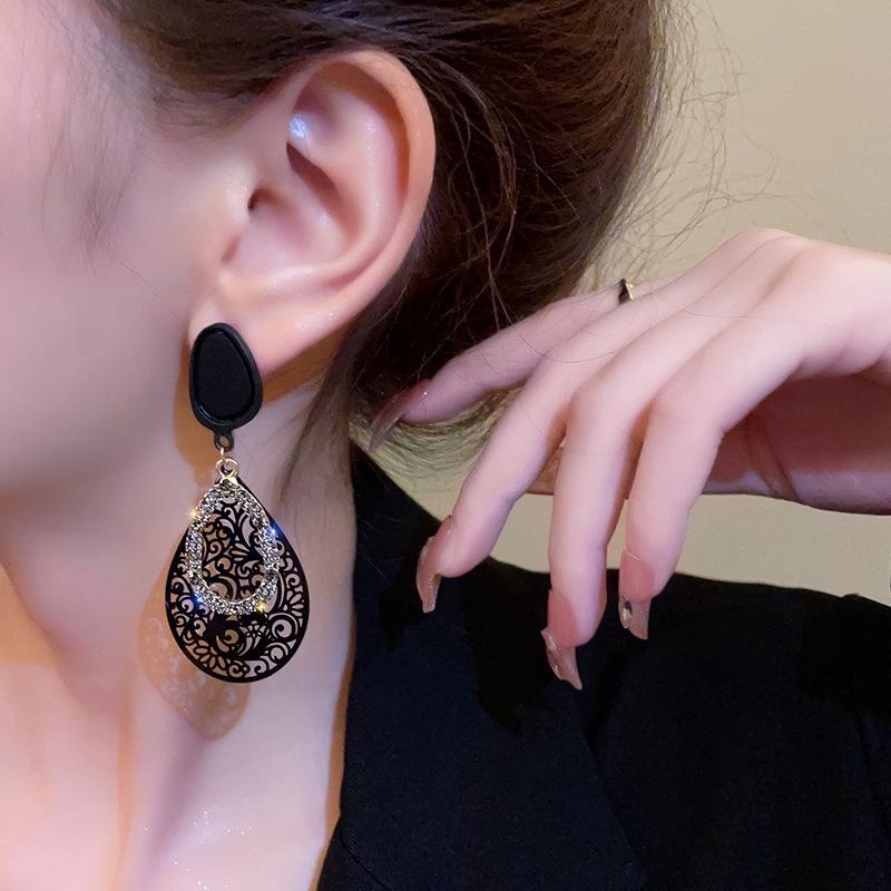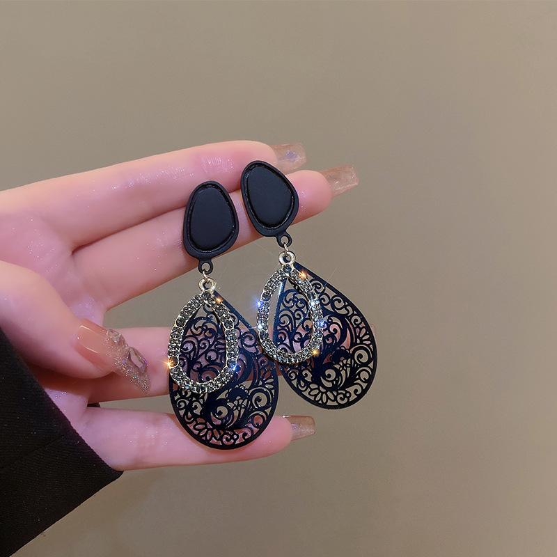 Pendientes retro con diseño hueco de aguja plateada y gotas de agua, pendientes exagerados de temperamento surcoreano, pendientes de viento frío de metal de nicho para mujer