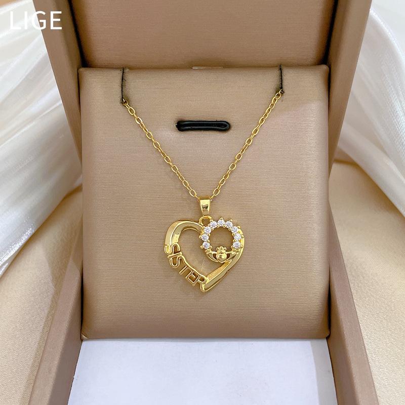 [Acero de titanio] Anillo de amor ligero, elegante y lujoso, collar de diamantes para mujer, cadena de clavícula combinable, cadena de acero de titanio.