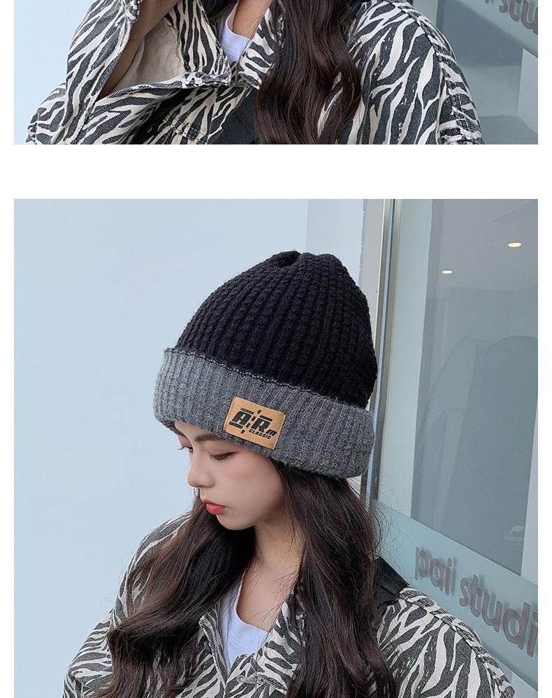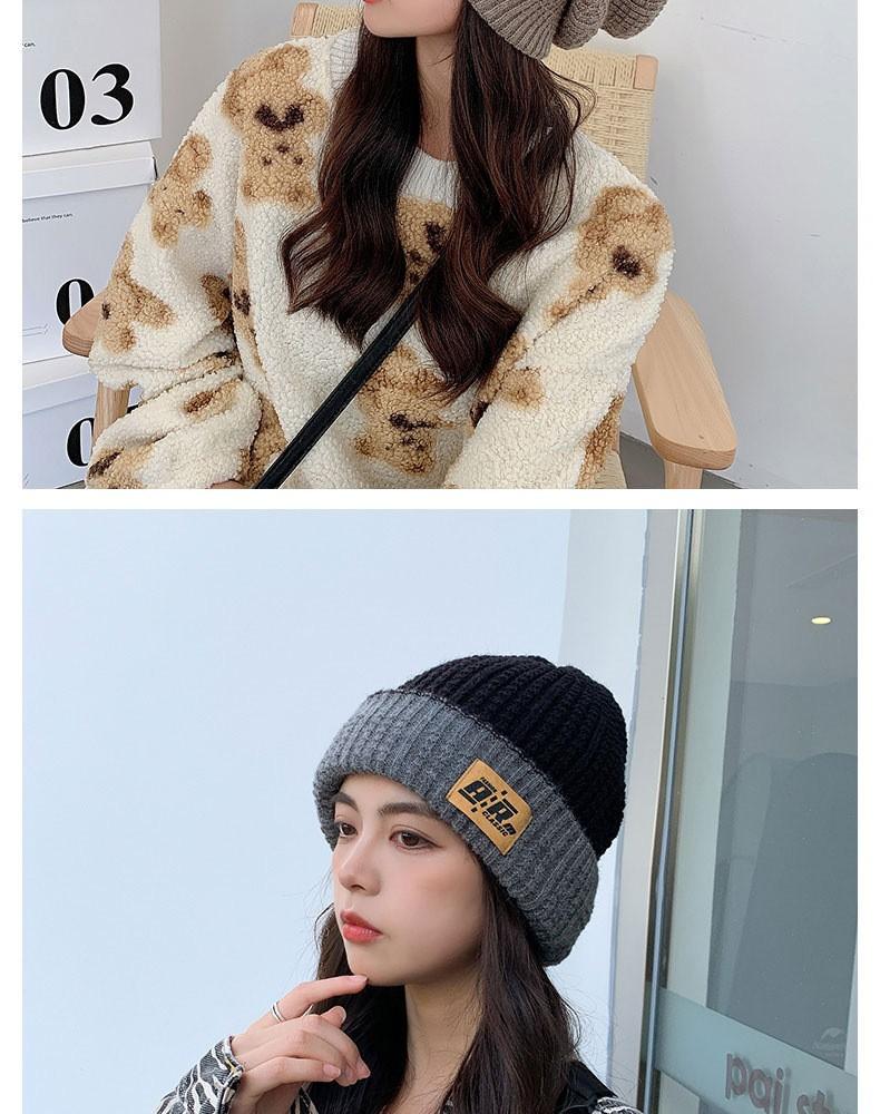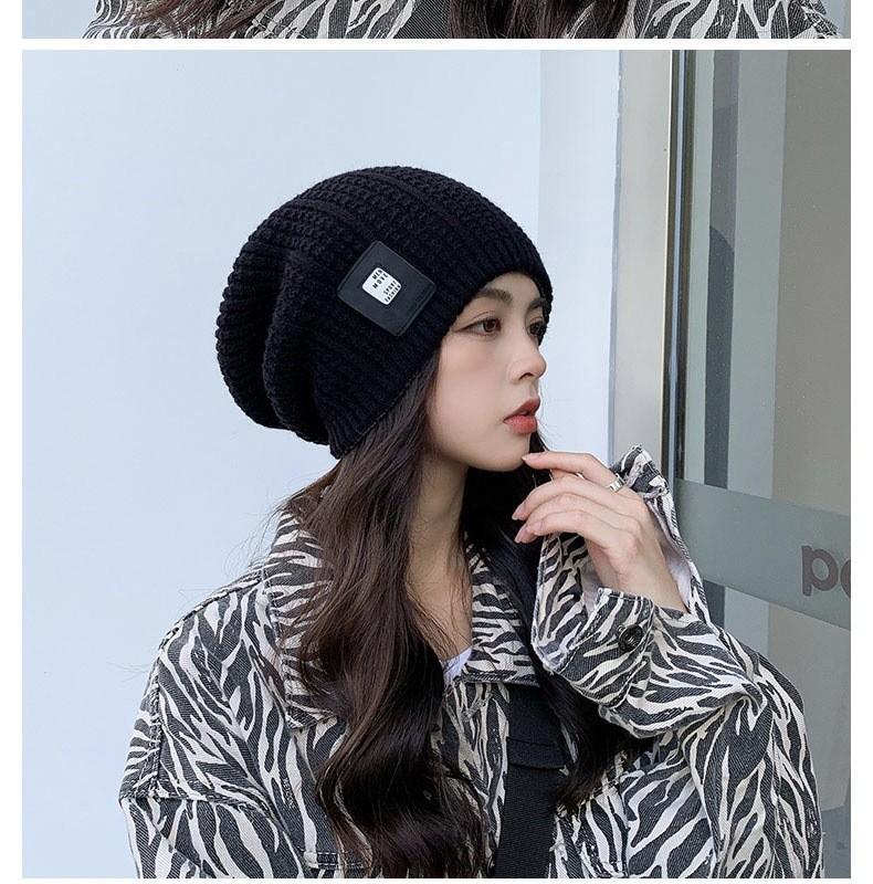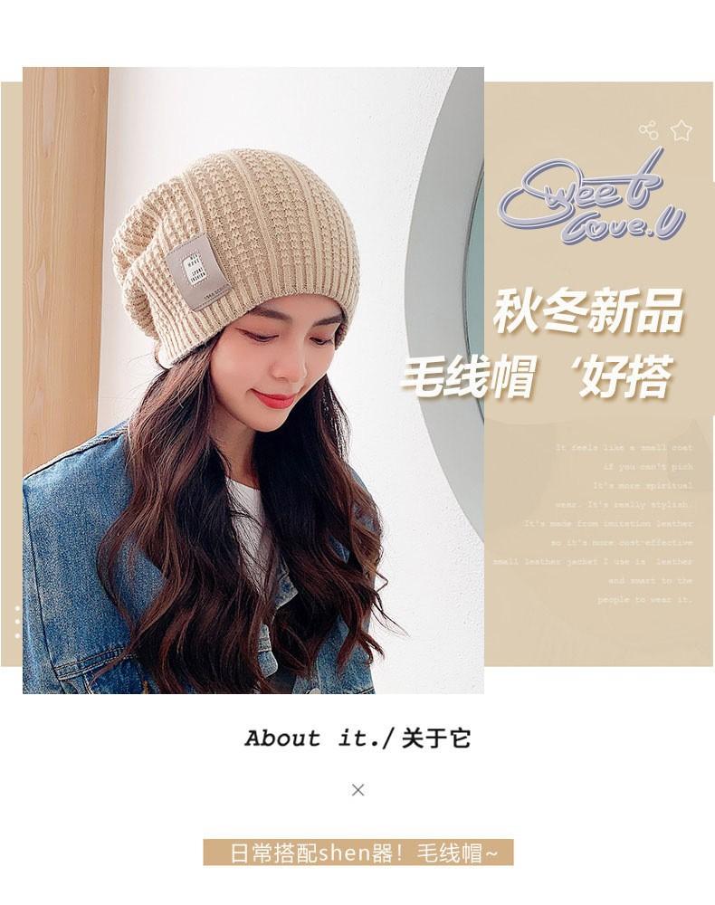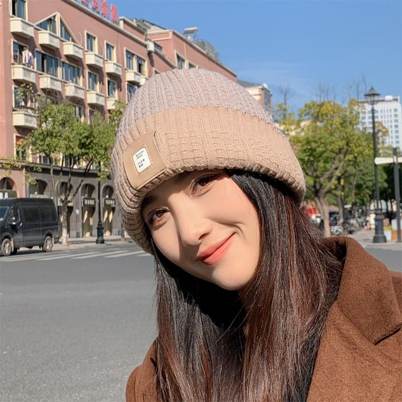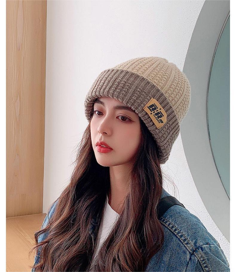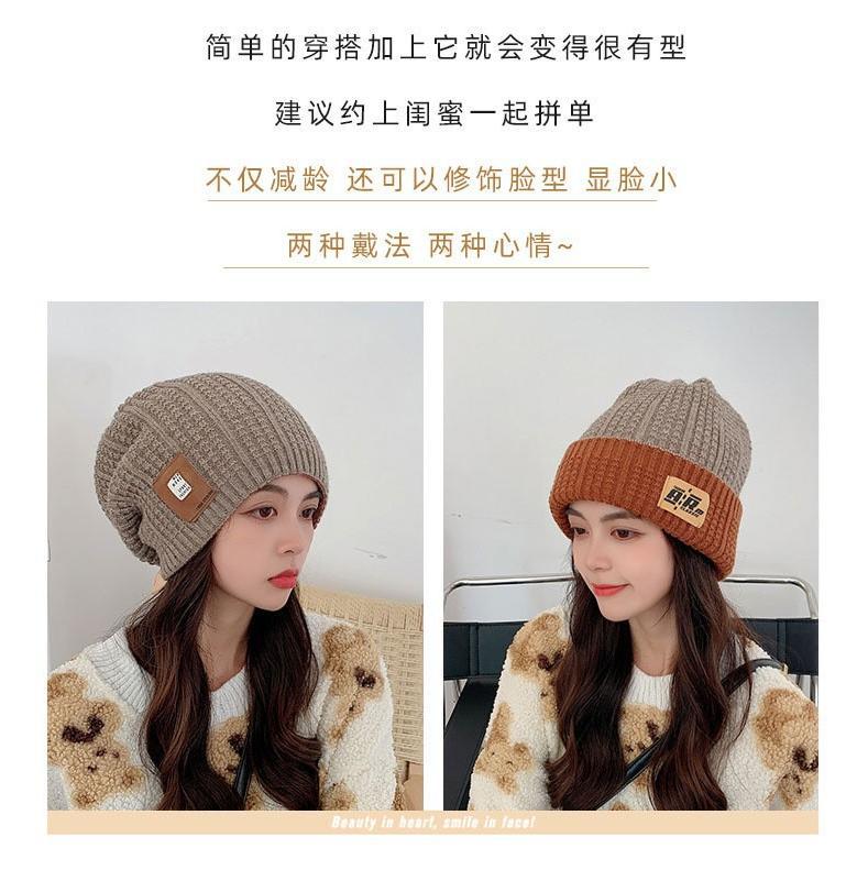 Gorro de otoño e invierno de cuatro piezas, gorro de punto de doble cara con letras baotou, gorro cálido de pelo largo