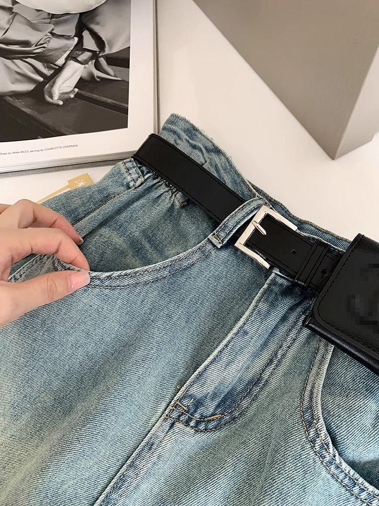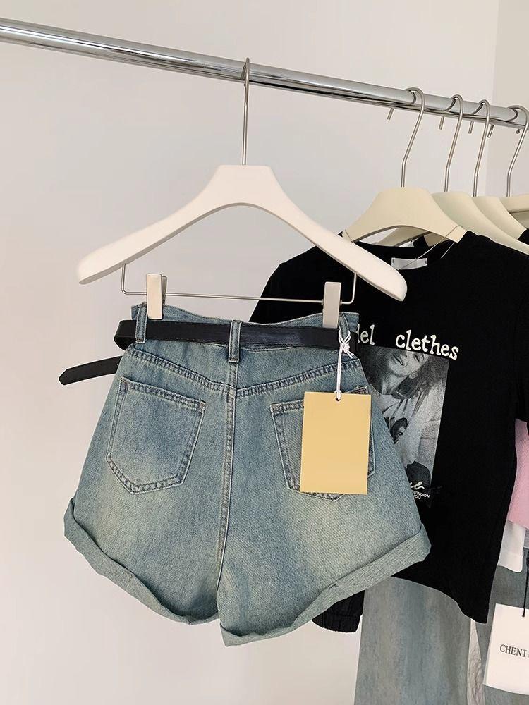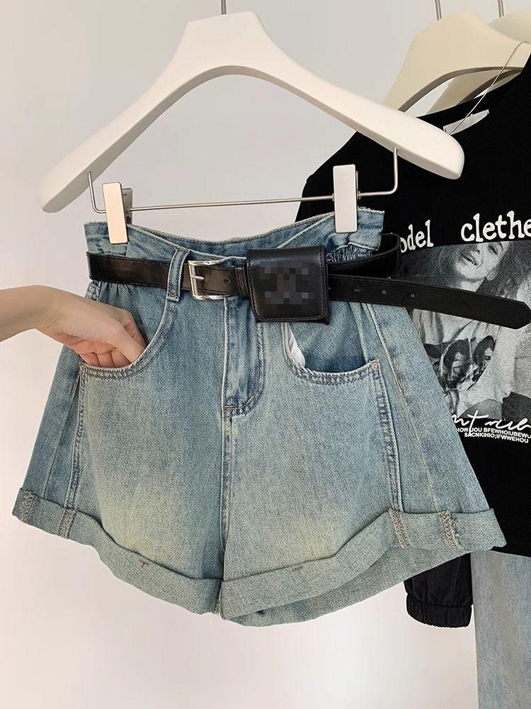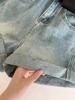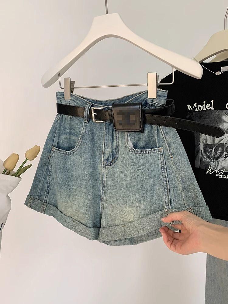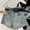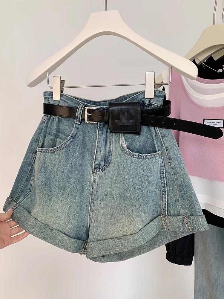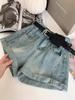 Shorts de mezclilla de talla grande con diseño rizado para mujer 2025 Verano Nuevo Cintura alta Holgados Aspecto adelgazante Línea A Pierna ancha Pantalones cortos de moda
